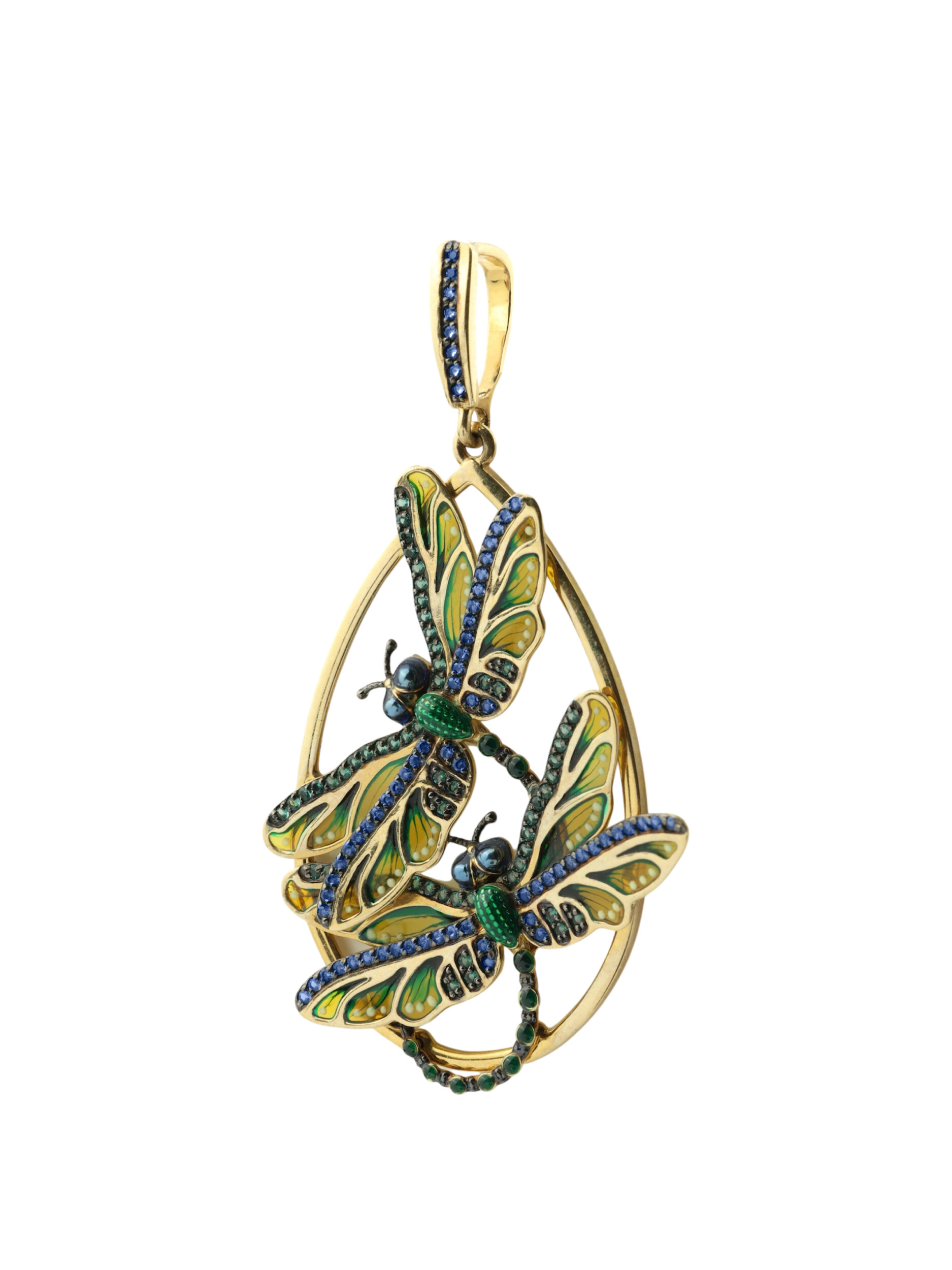 Подвеска из лимонного золота c сапфиром, изумрудом и эмалью