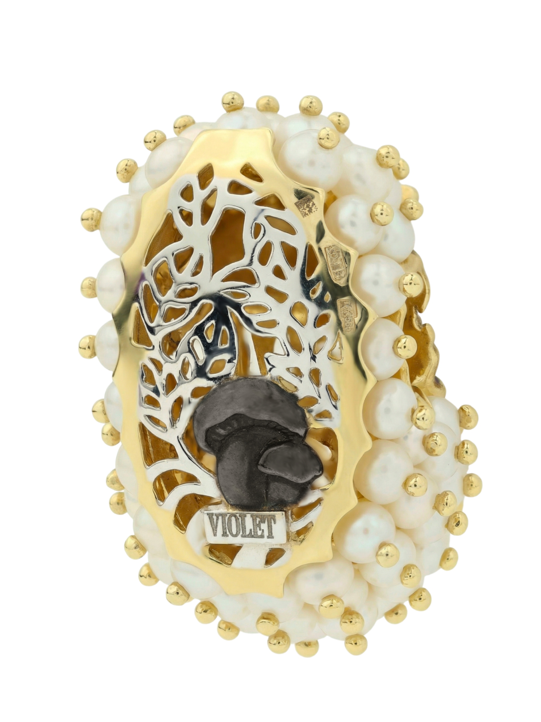 Подвеска из лимонного золота c эмалью и жемчугом