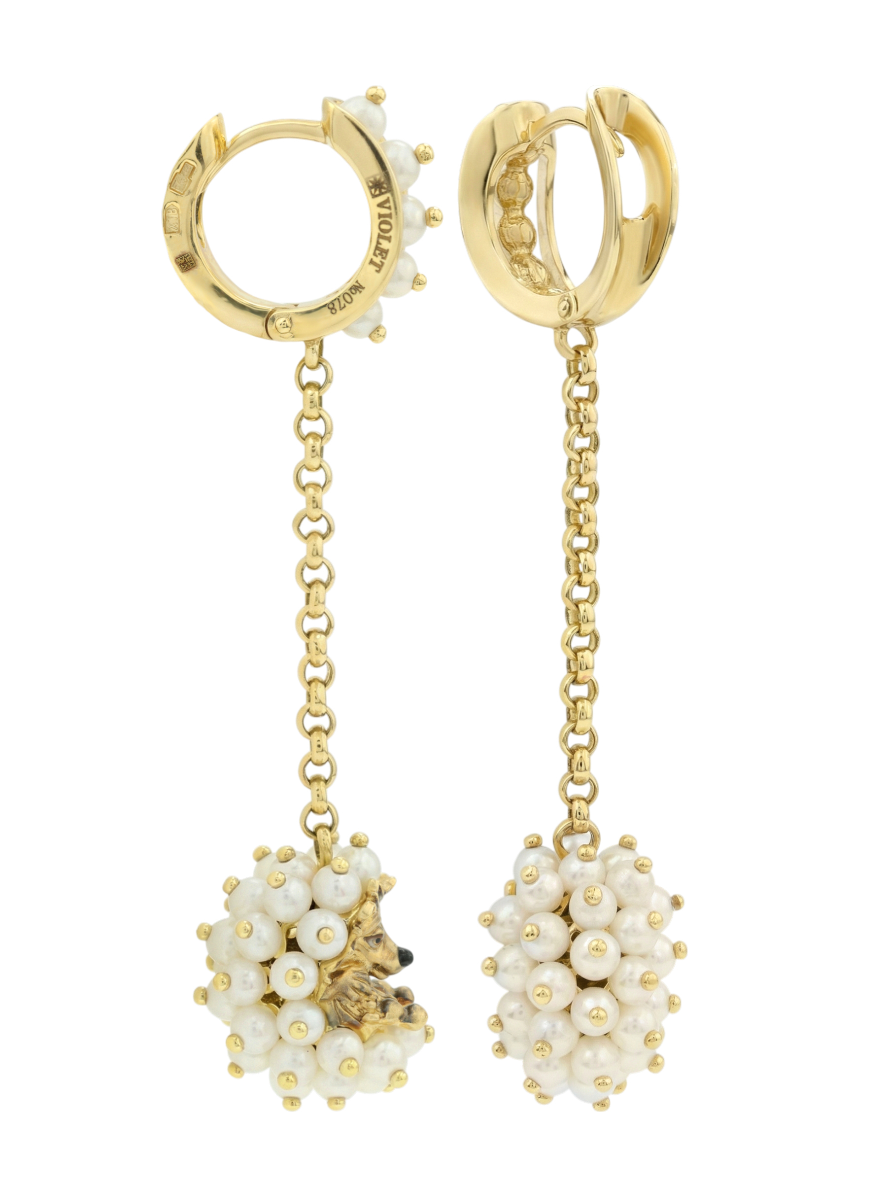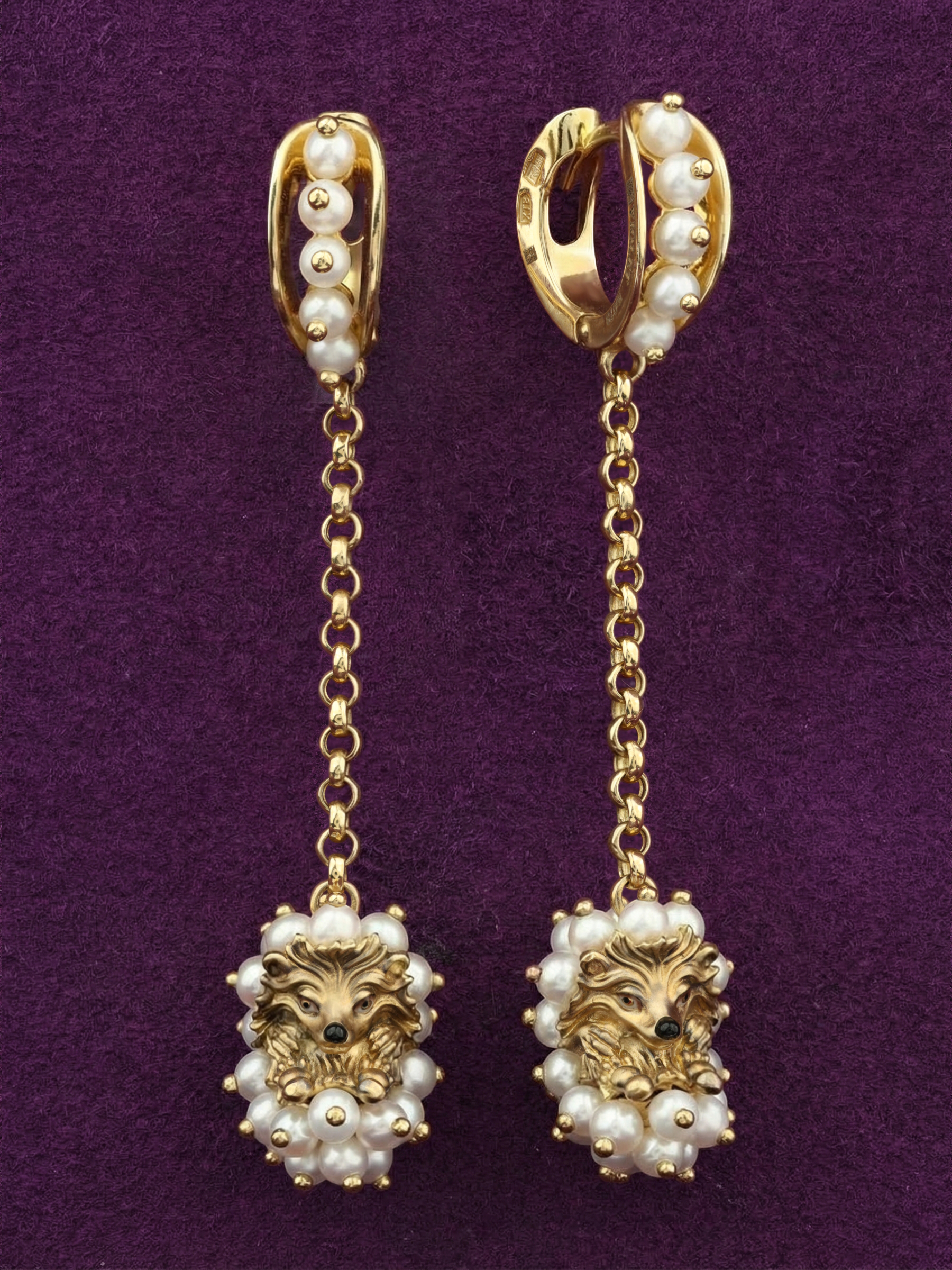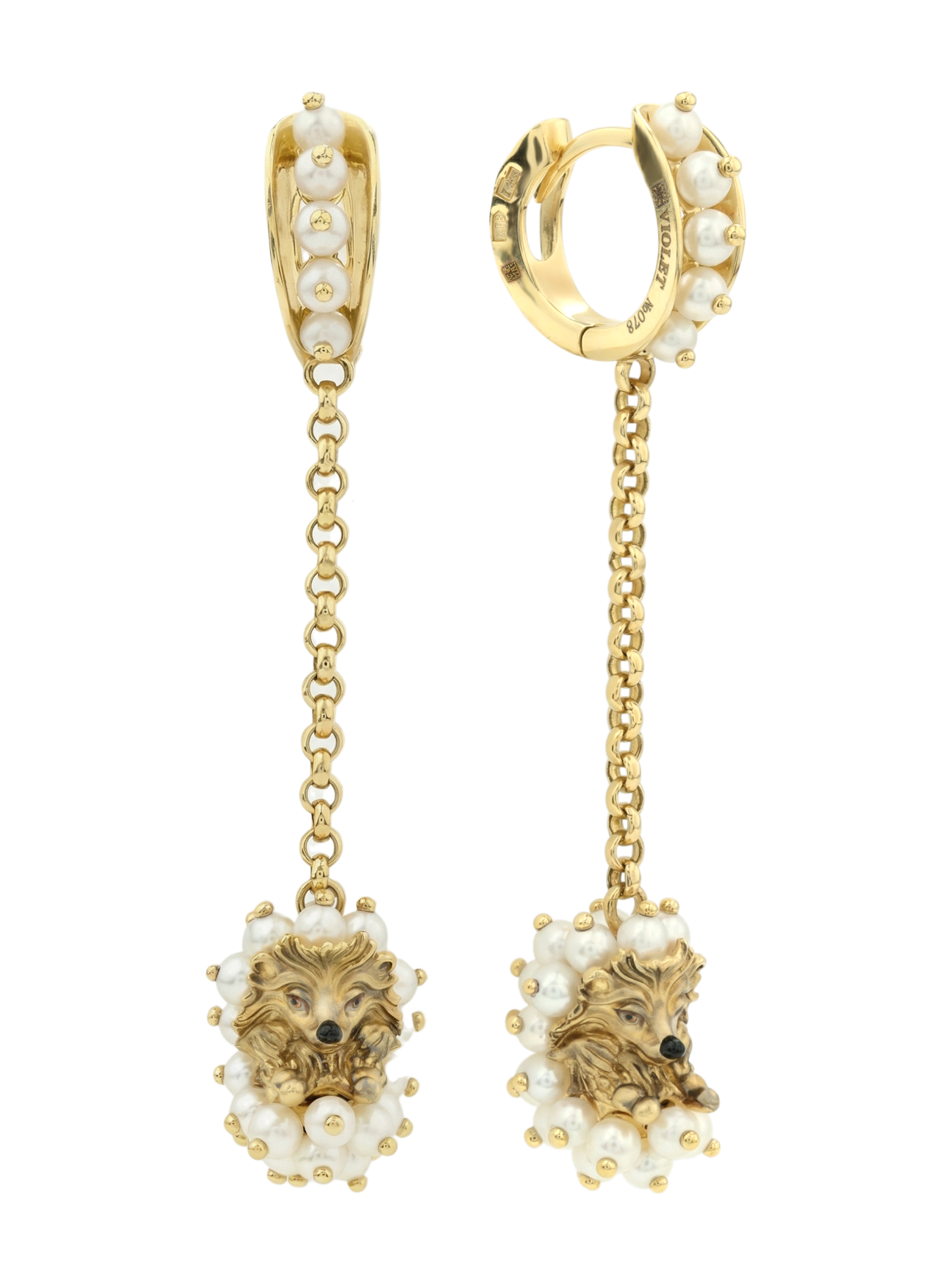 Серьги из лимонного золота c эмалью и жемчугом