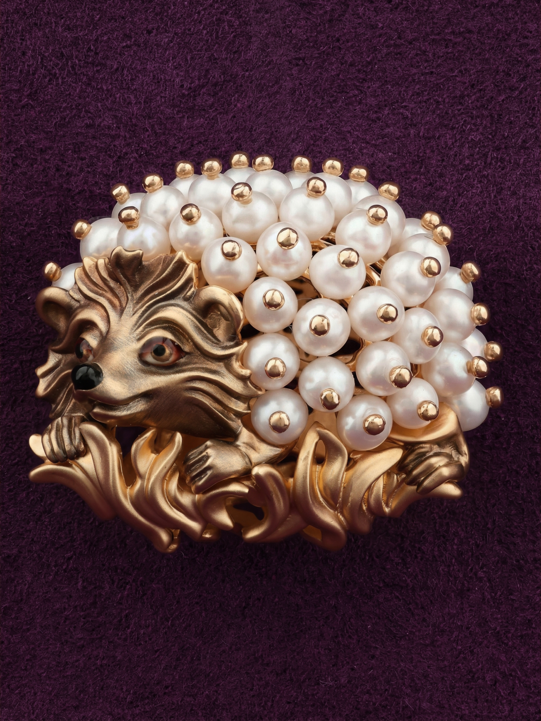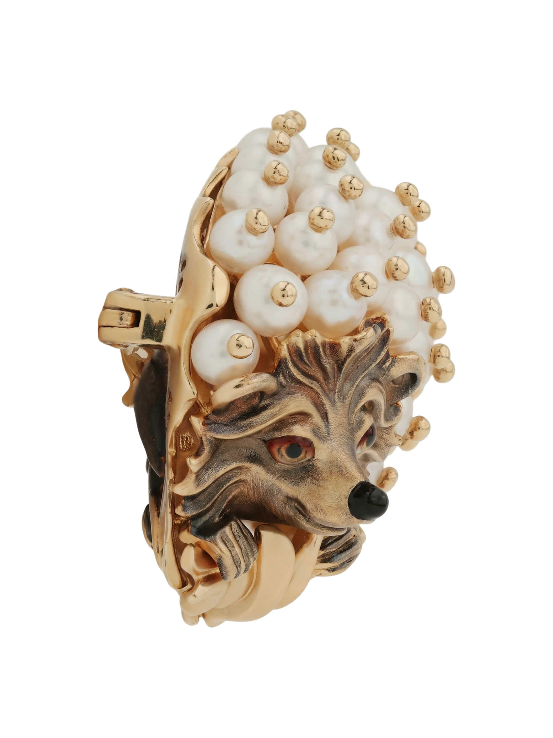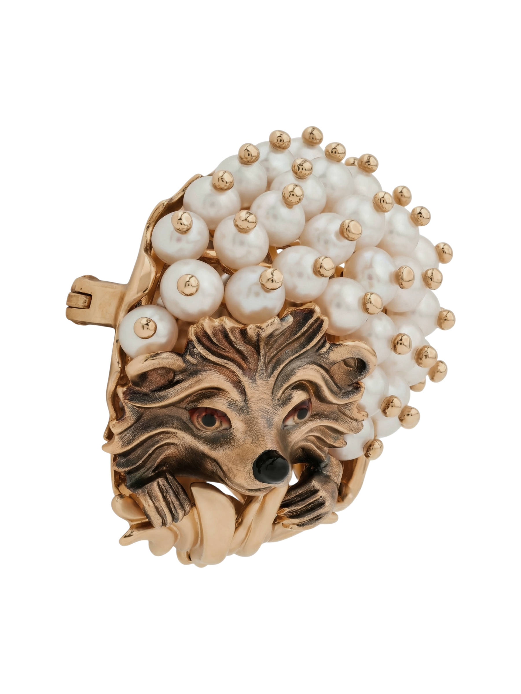Брошь из золота c эмалью и жемчугом