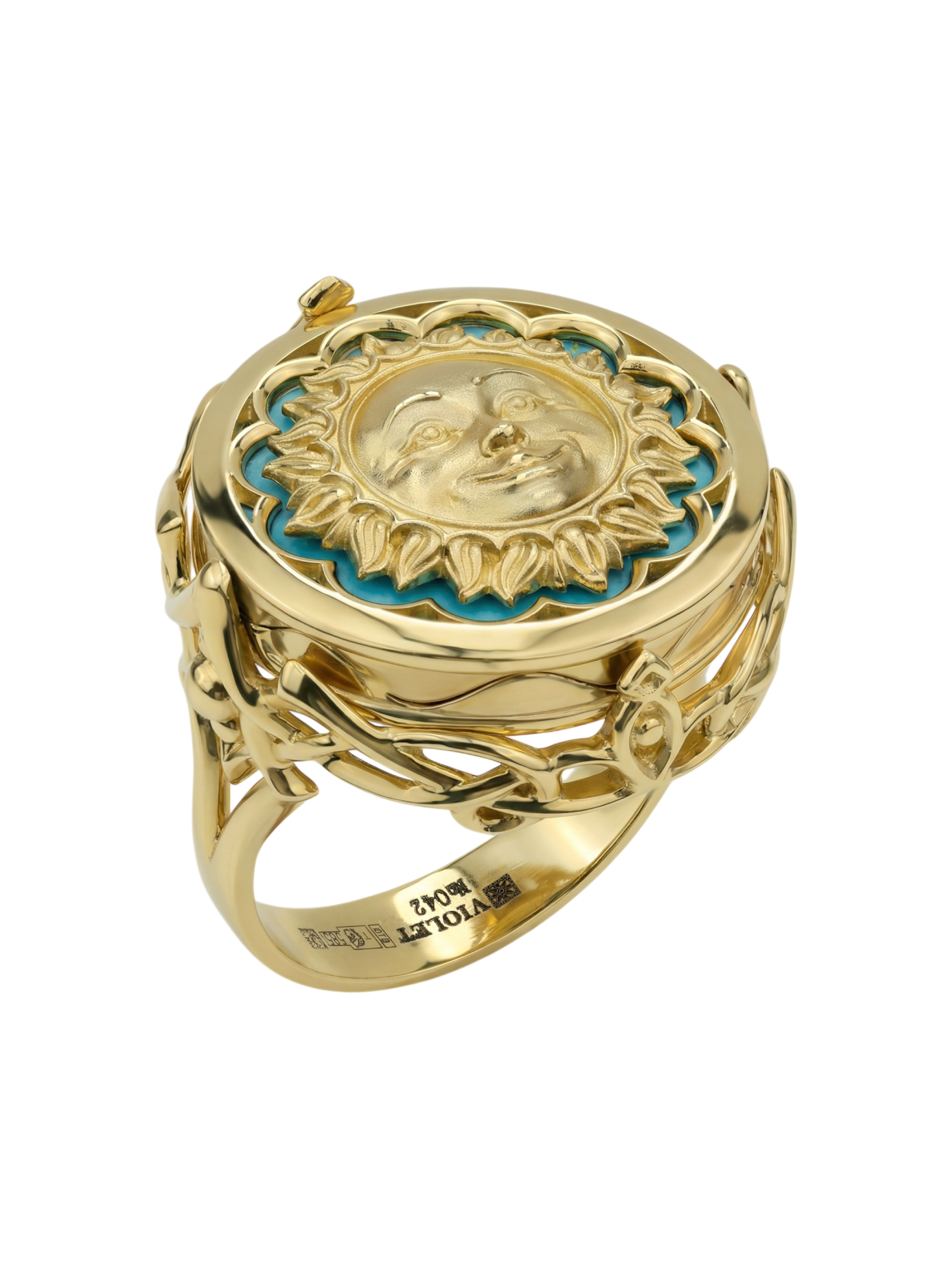 Кольцо из лимонного золота c бирюзой и лазуритом