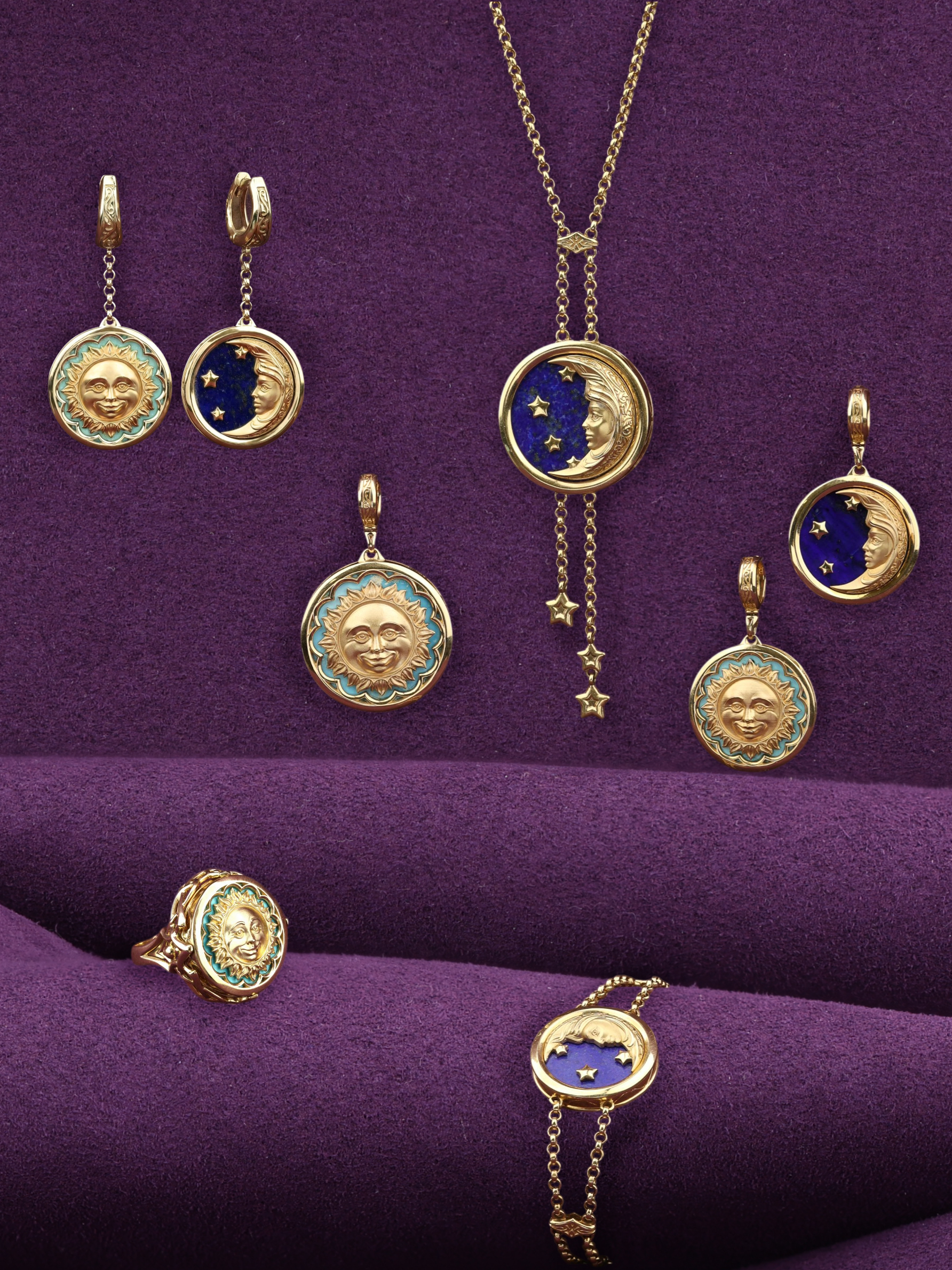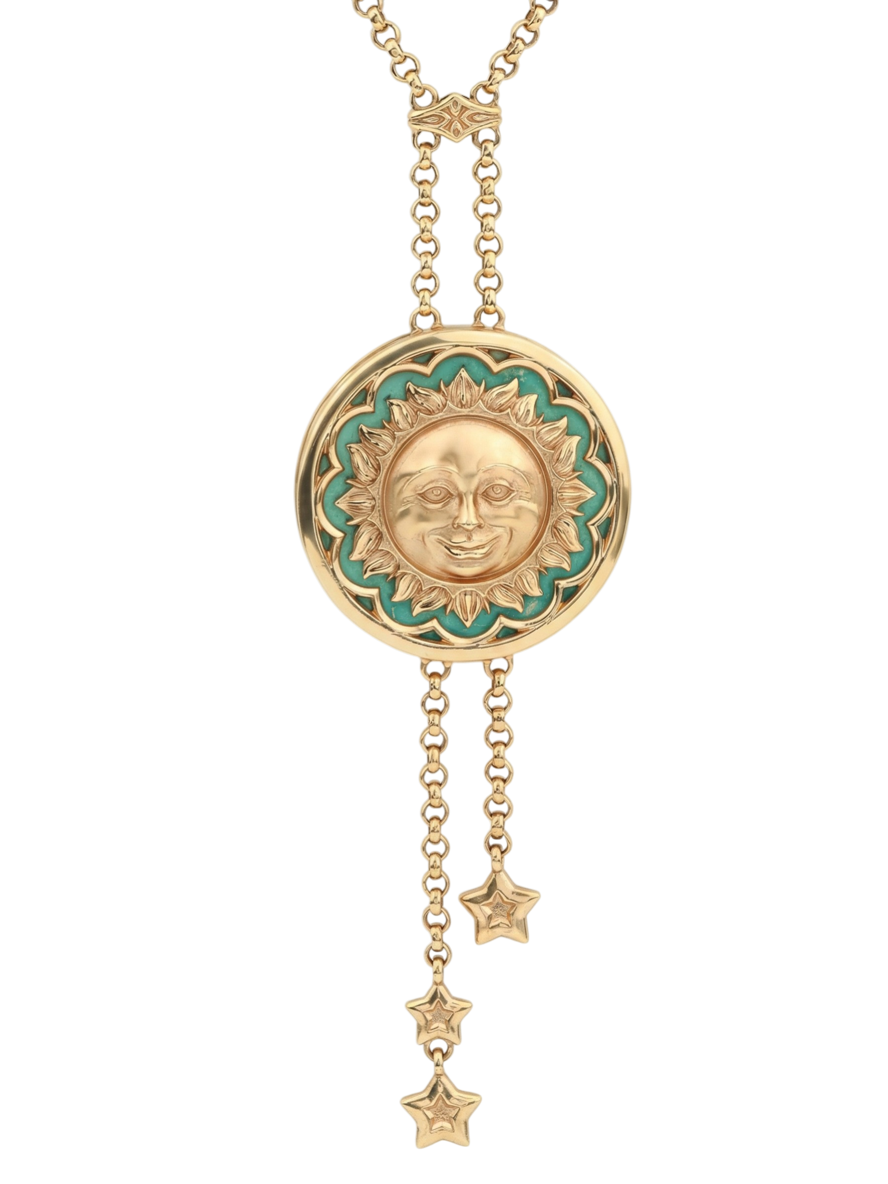 Колье из лимонного золота c бирюзой и лазуритом