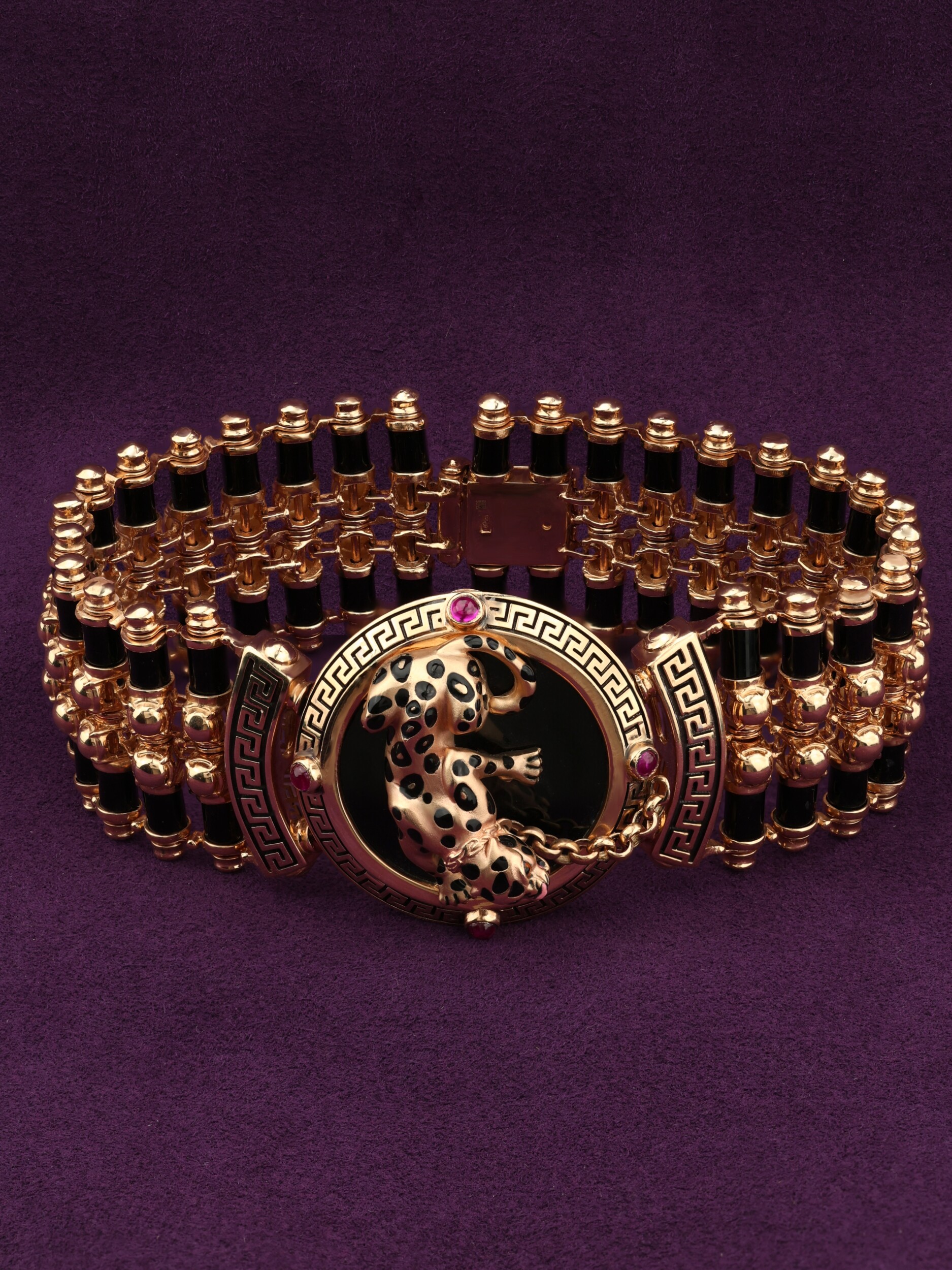 Браслет из золота c эмалью, ониксом и рубином