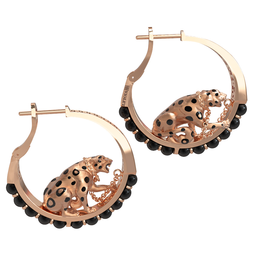 Серьги из золота c эмалью и ониксом