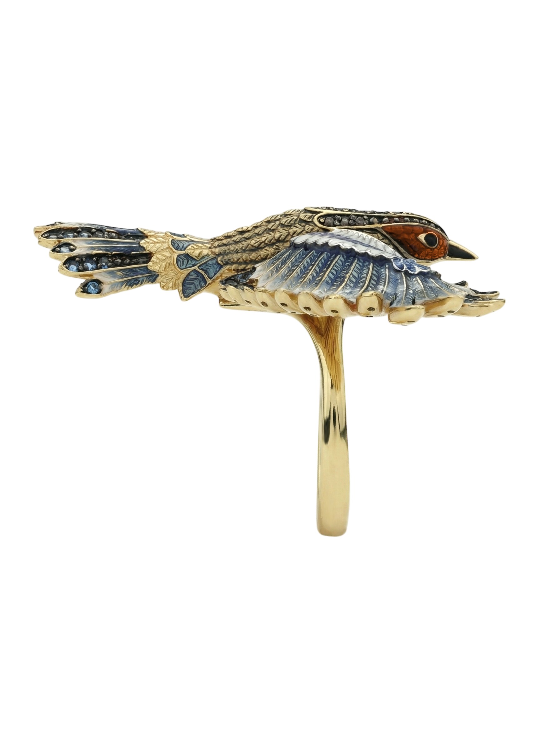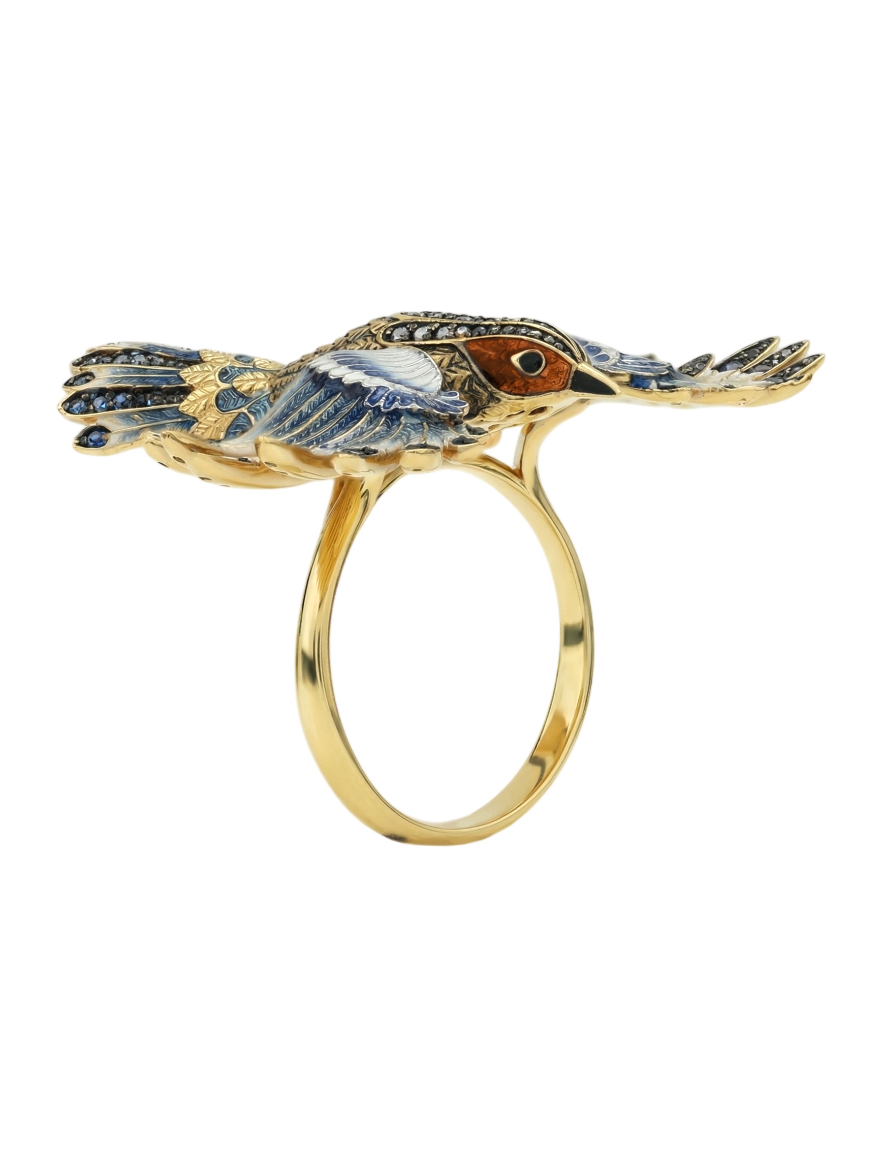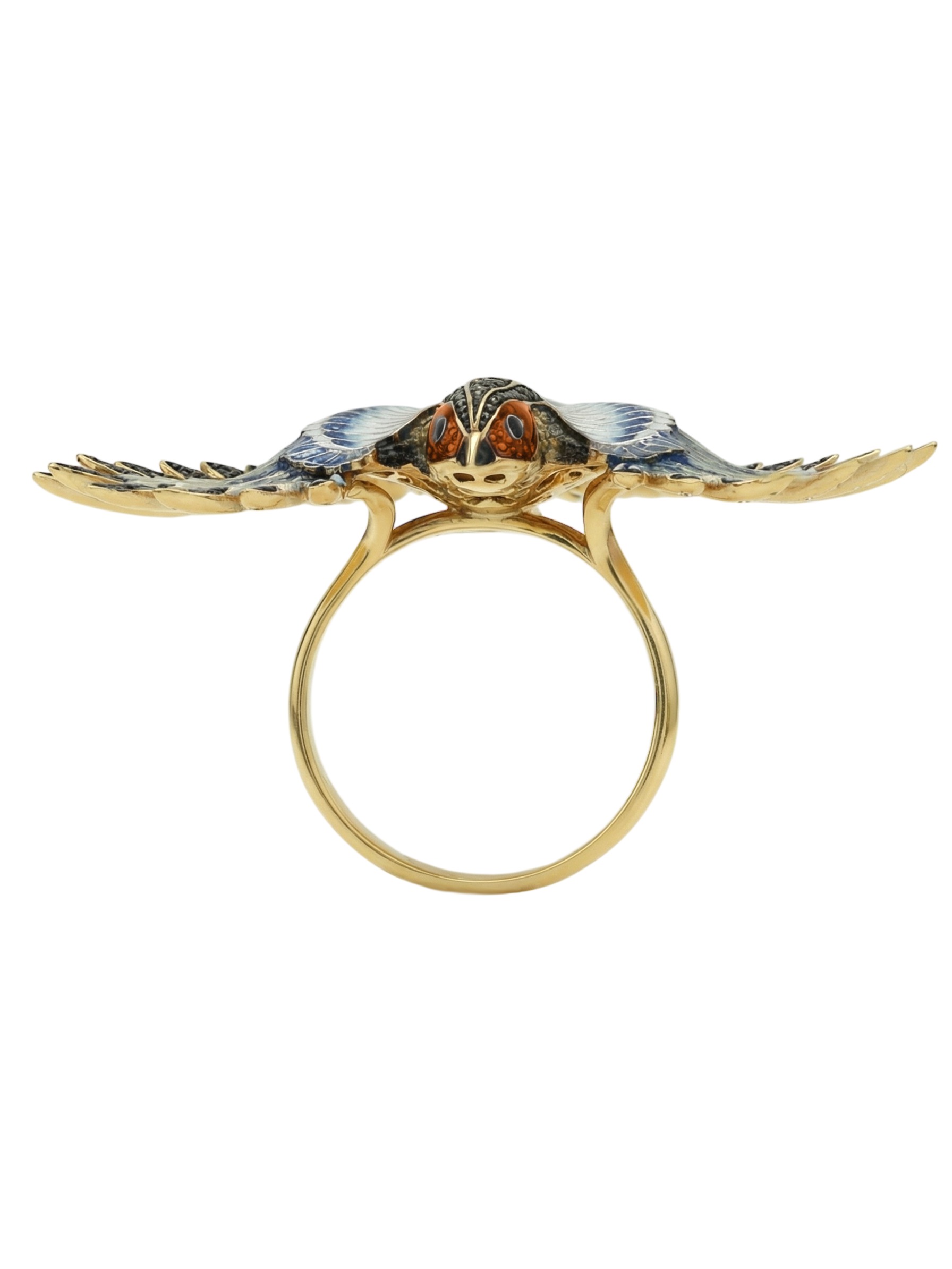 Кольцо из лимонного золота c эмалью и фианитом