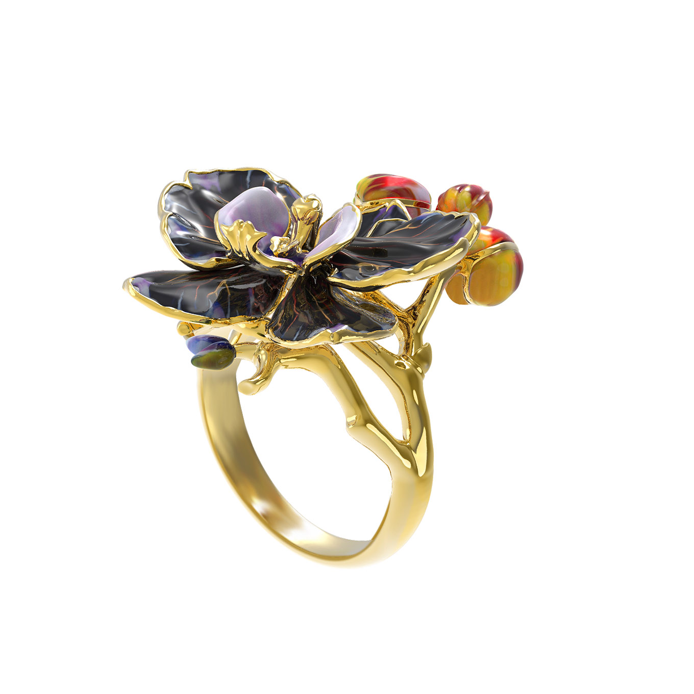 Кольцо из лимонного золота c эмалью