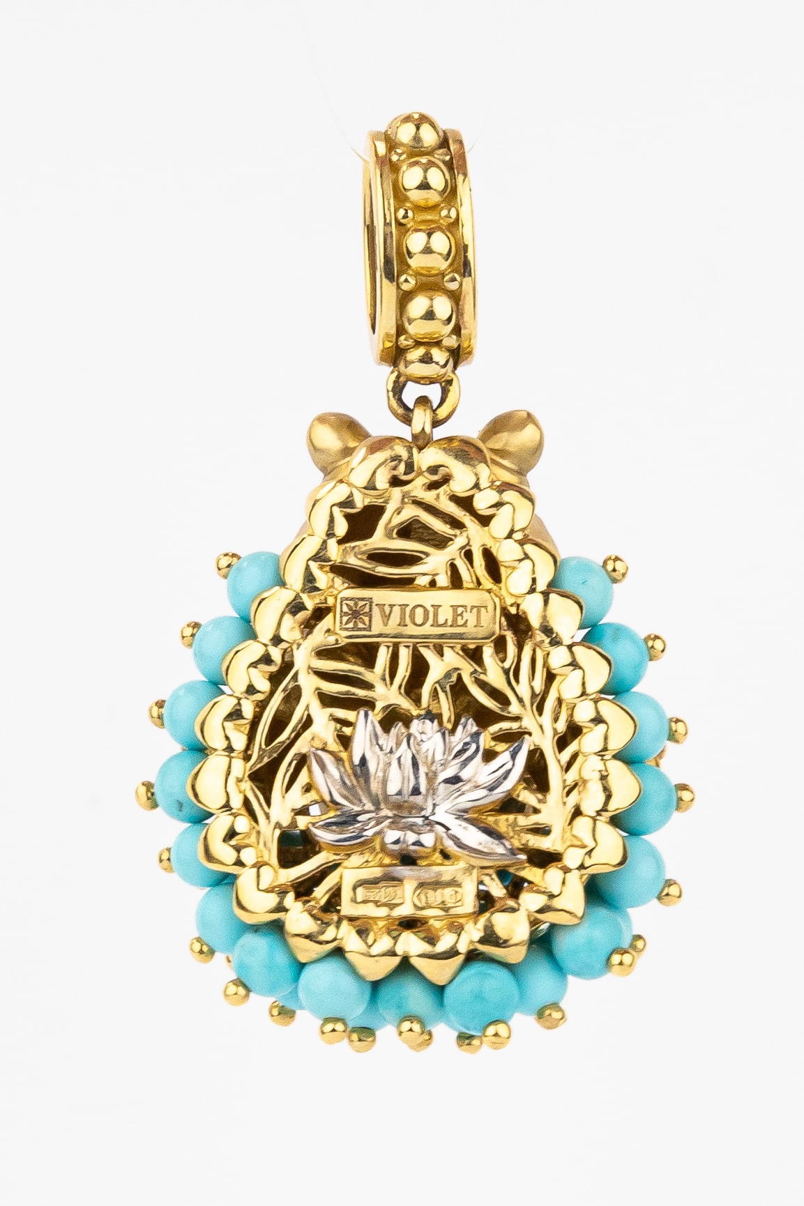 Подвеска из лимонного золота c эмалью и бирюзой