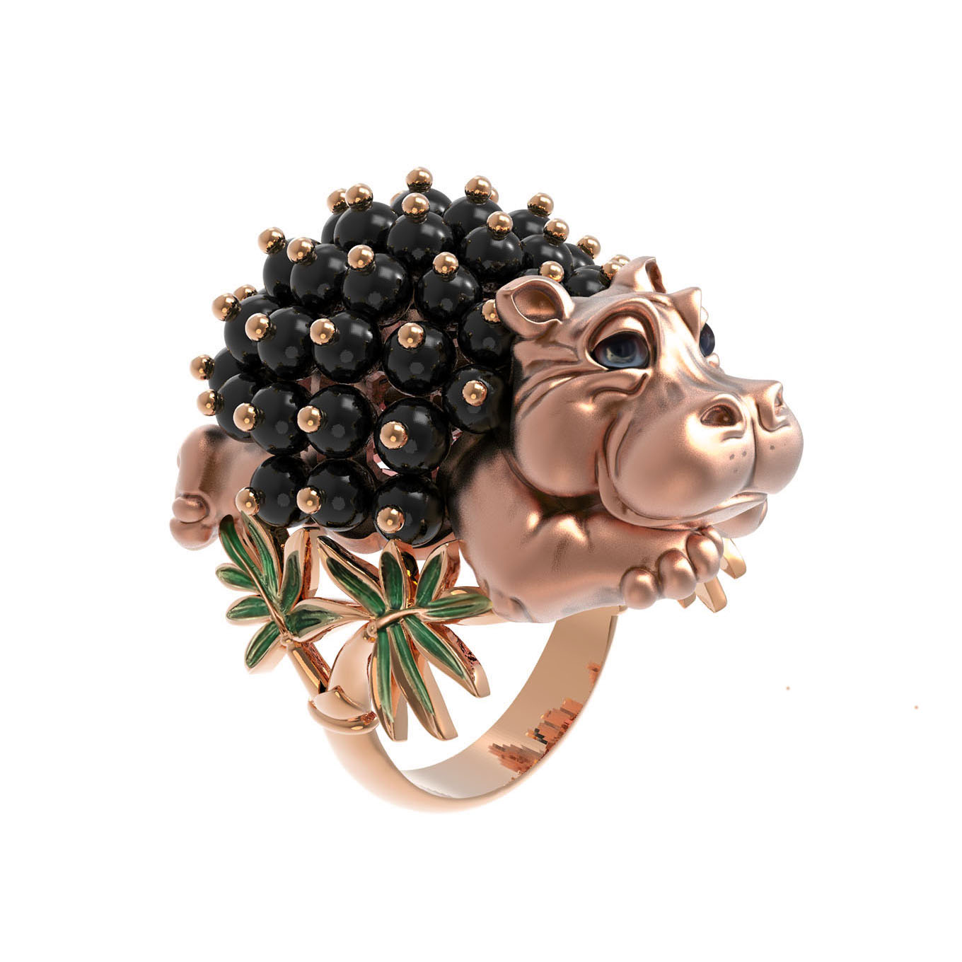 Кольцо из золота c эмалью и ониксом