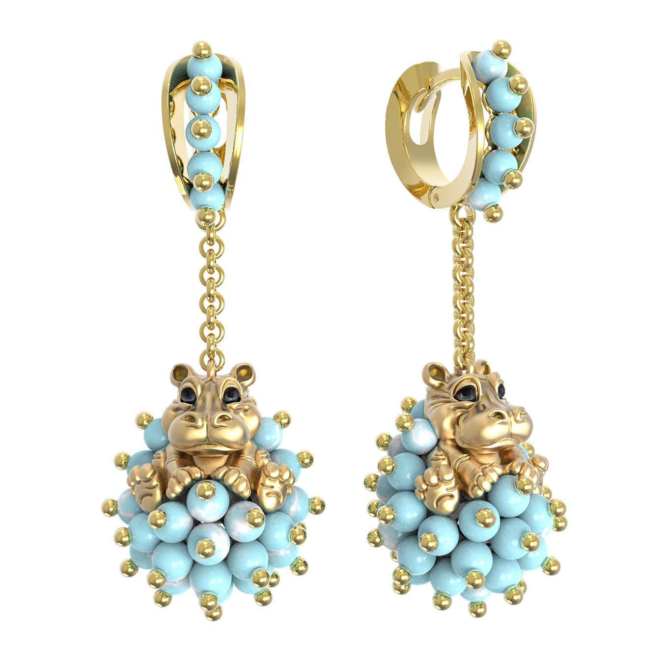 Серьги из лимонного золота c эмалью и бирюзой