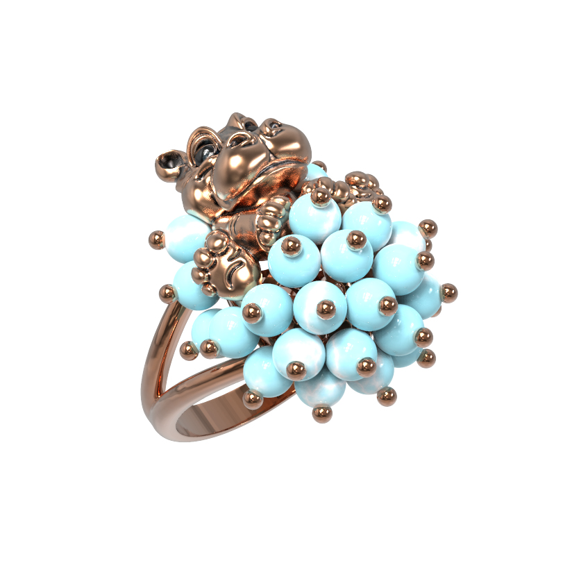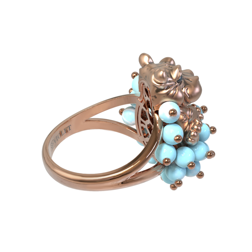 Кольцо из золота c эмалью и бирюзой