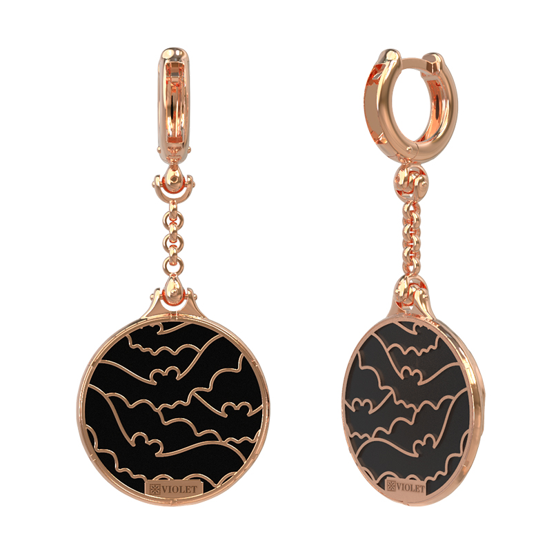 Серьги из золота c эмалью и ониксом