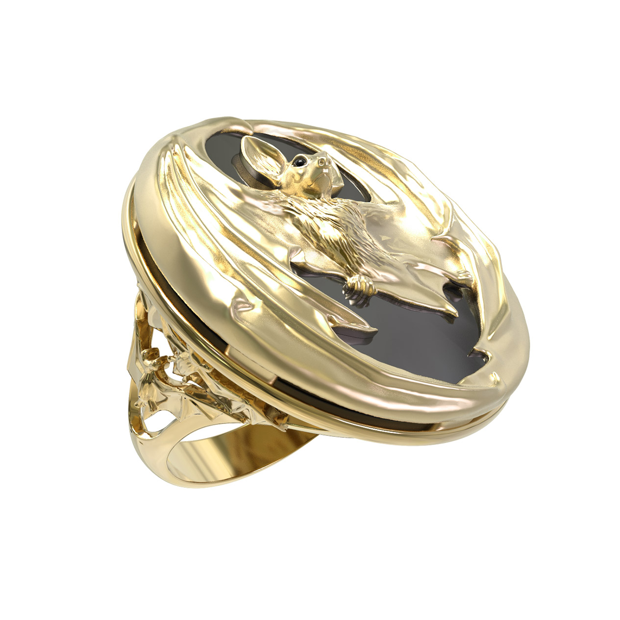 Кольцо из лимонного золота c эмалью и ониксом