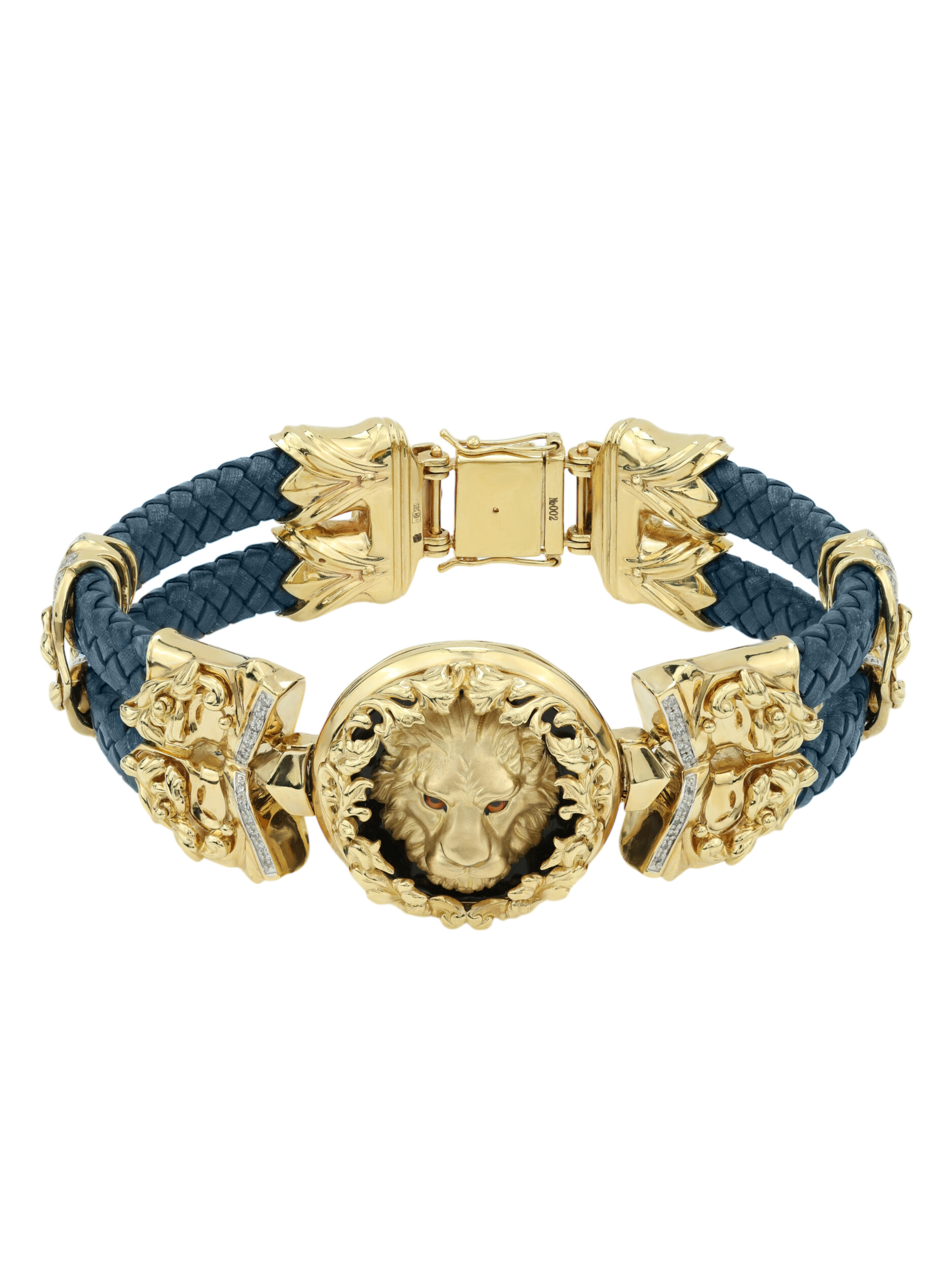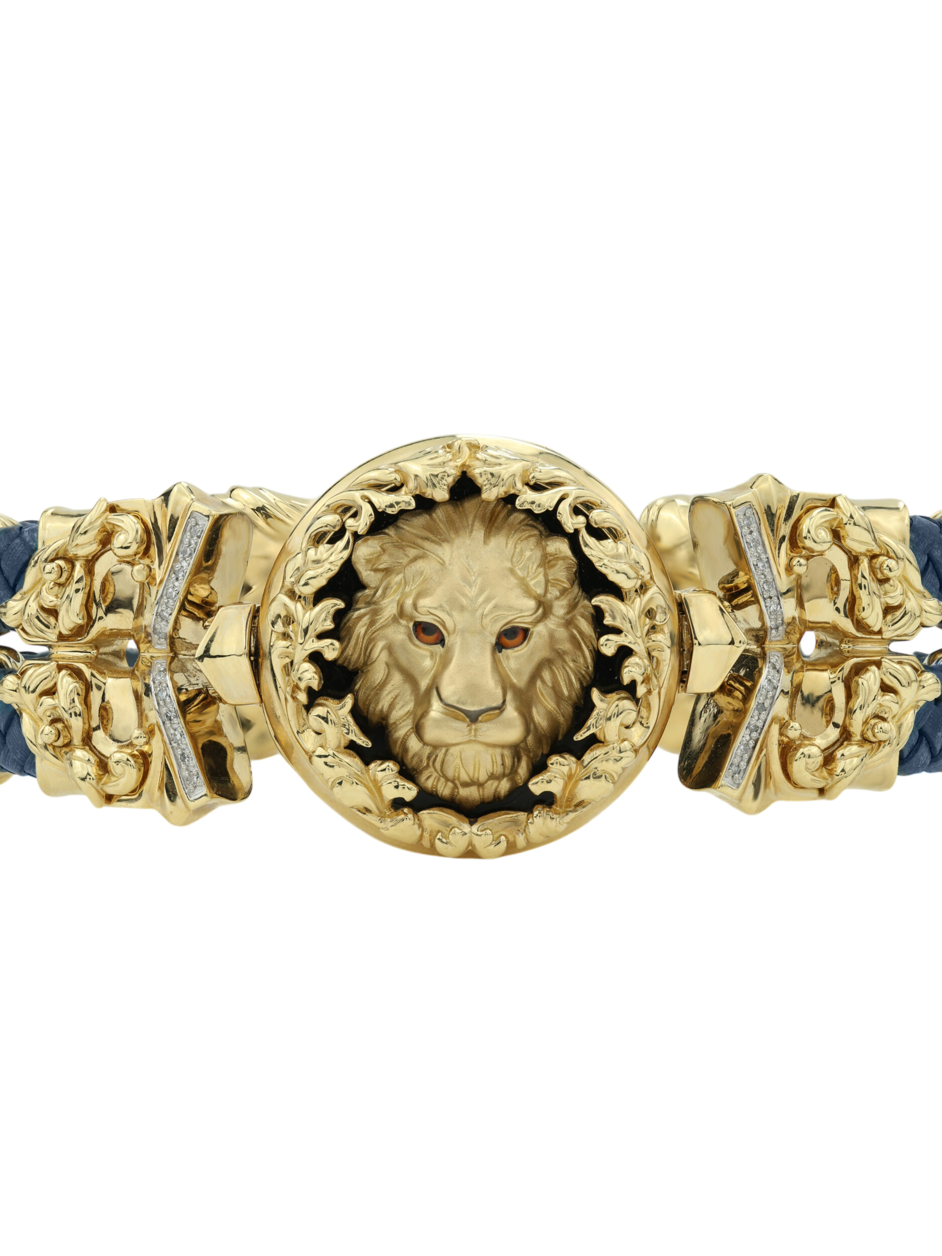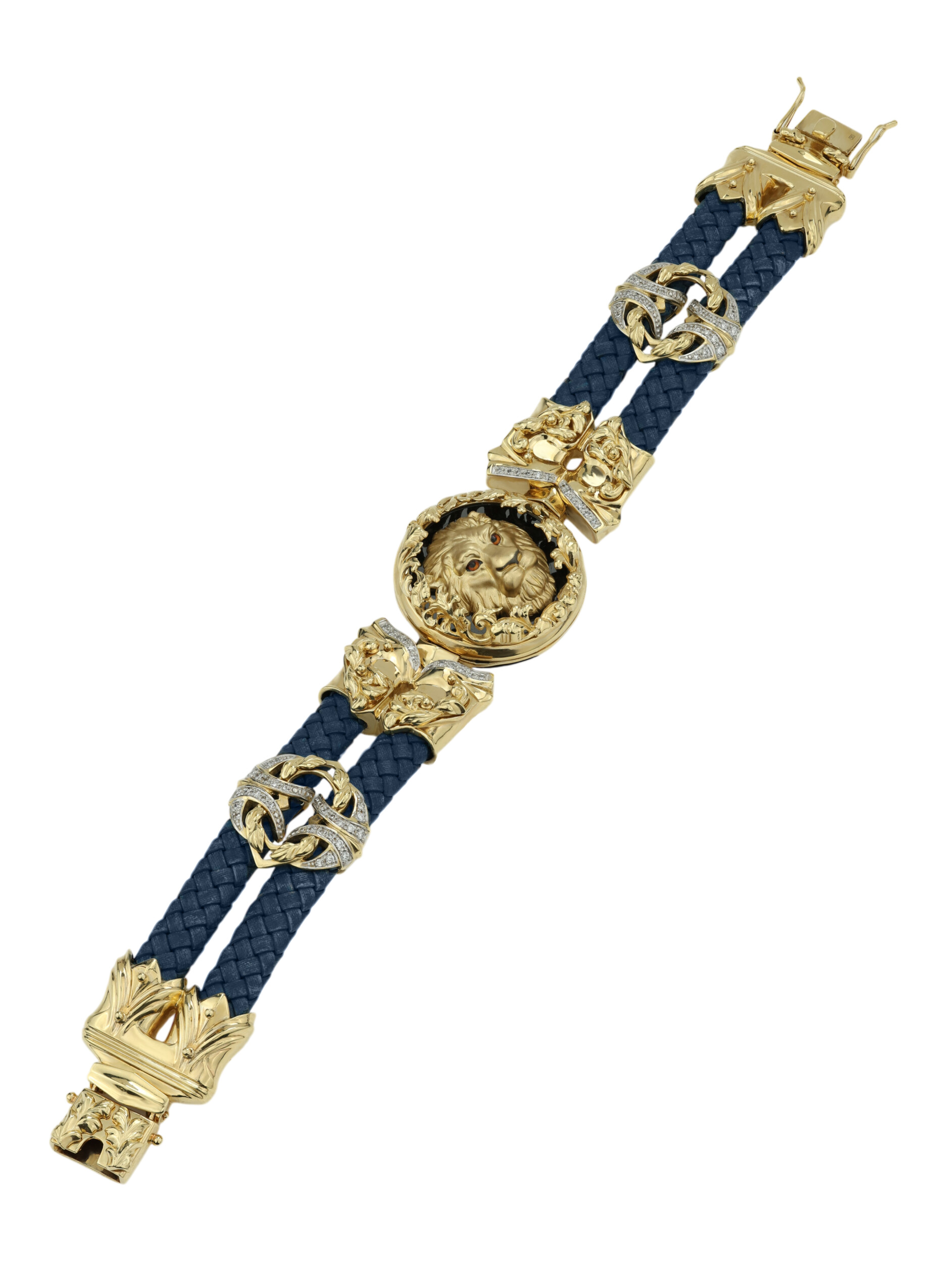 Браслет из лимонного золота c эмалью, бриллиантами, кожаным шнурком и ониксом