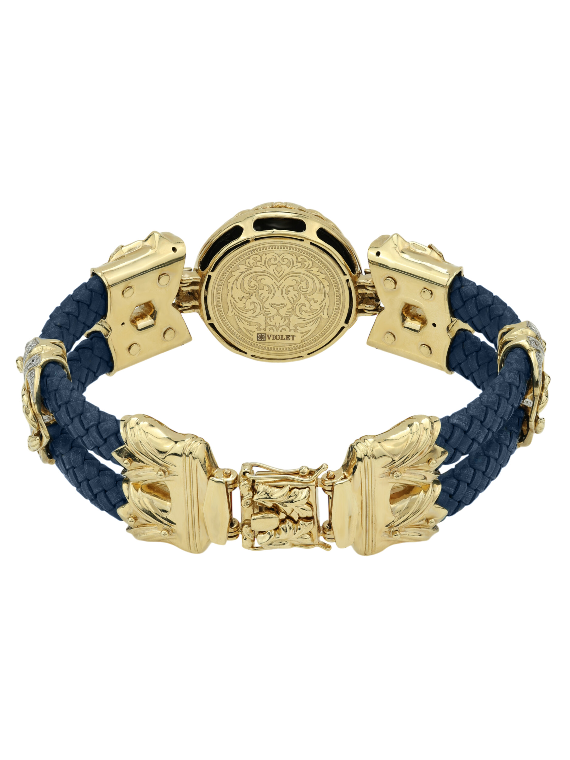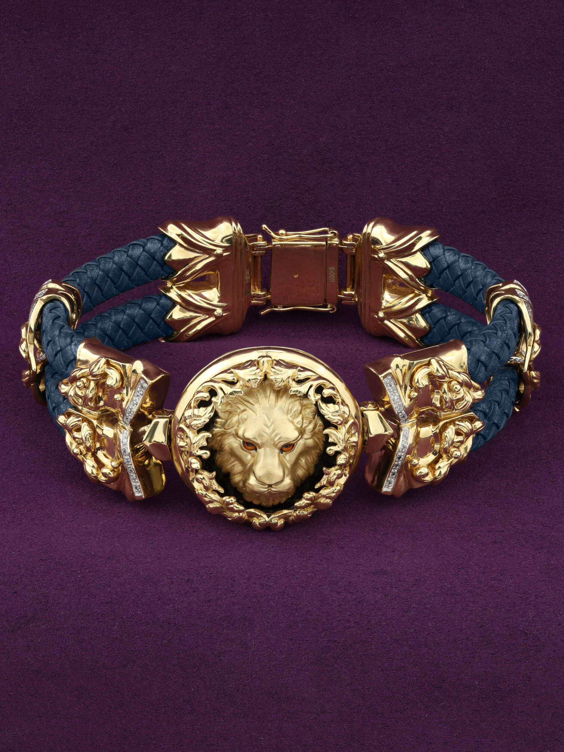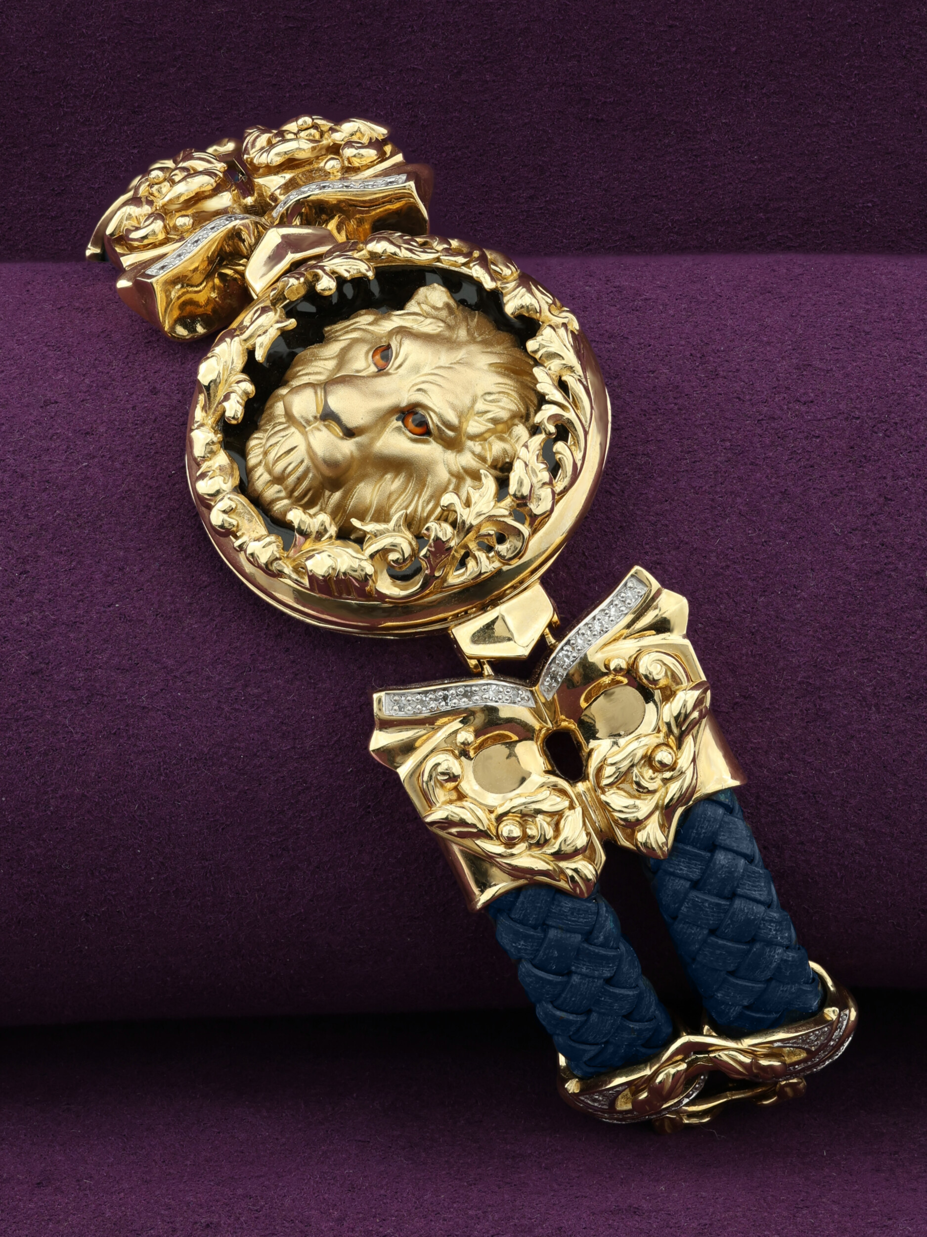 Браслет из лимонного золота c эмалью, бриллиантами, кожаным шнурком и ониксом