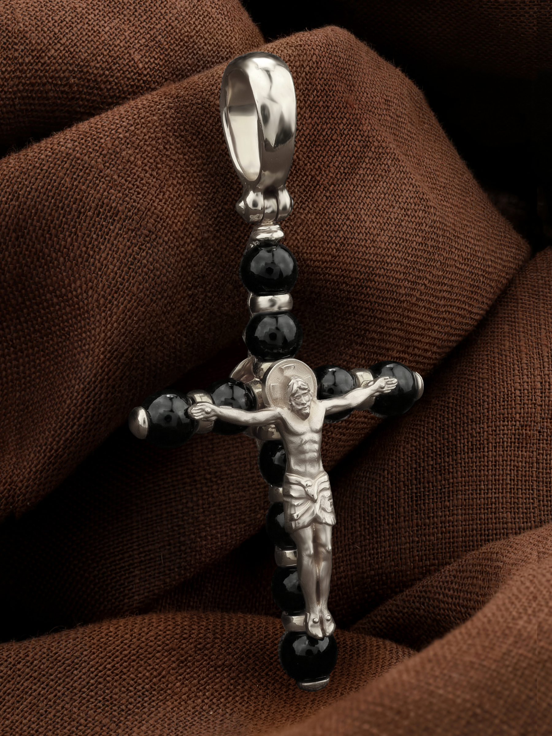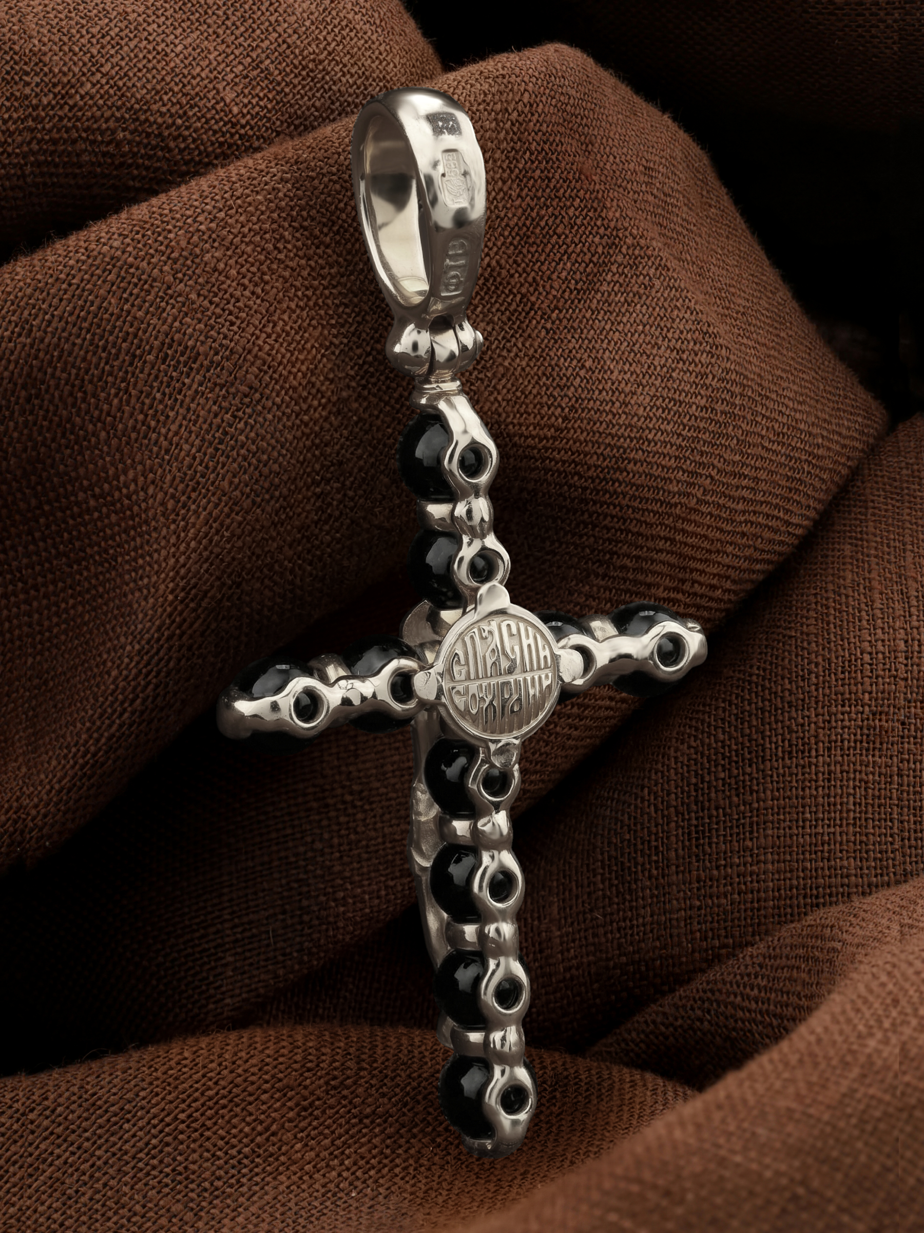 Крест из белого золота c ониксом