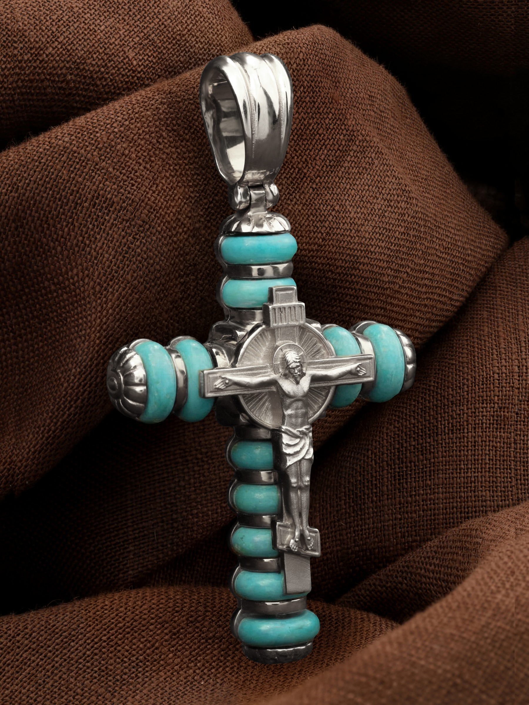 На лицевой стороне креста изображено Распятие Господа и Спасителя нашего Иисуса Христа, отдавшего Себя на смерть для искупления грехов мира. Крест является символом жертвенной любви Всеблагого Бога к падшим людям, всепобеждающим духовным оружием христиан, основанием и средоточием церковной жизни. Над вершиной Распятия помещена надпись «Царь Славы». На верхней перекладине расположена надпись «IНЦI». Она символизирует титло — табличку, на которой, согласно Евангелию, было начертано: Иисус Назорей, Царь Иудейский. Надпись «IC» «ХC»», означает Иисус Христос, помещаются на разных сторонах поперечной перекладины креста. Ниже помещена надпись «НИКА», что означает «победитель».