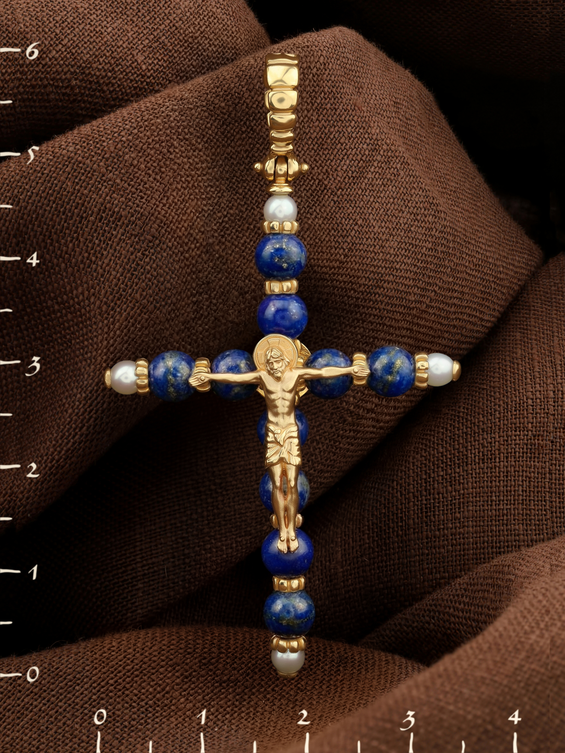 Крест из лимонного золота c жемчугом и лазуритом