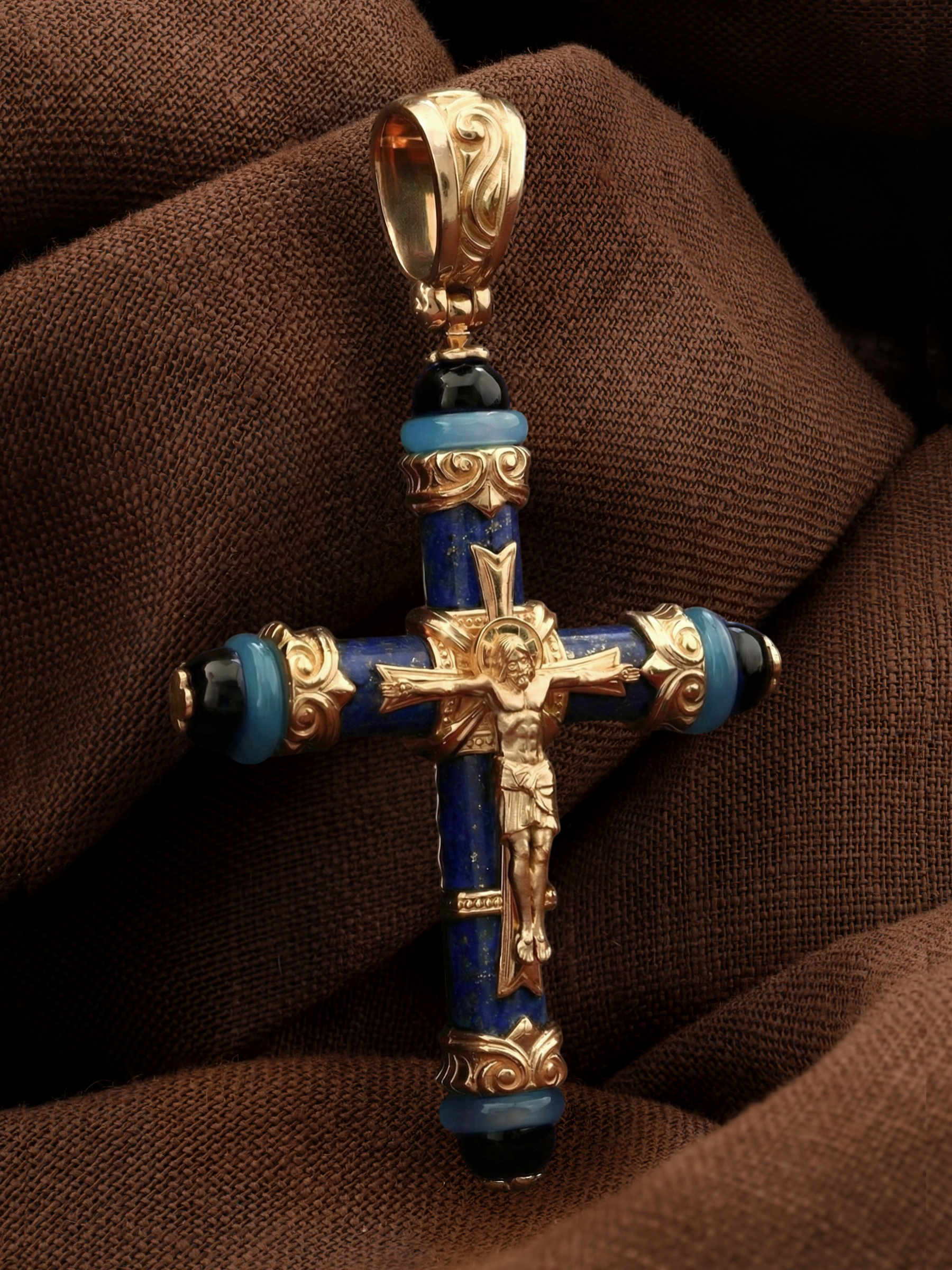 Крест из золота c ониксом, агатом и лазуритом