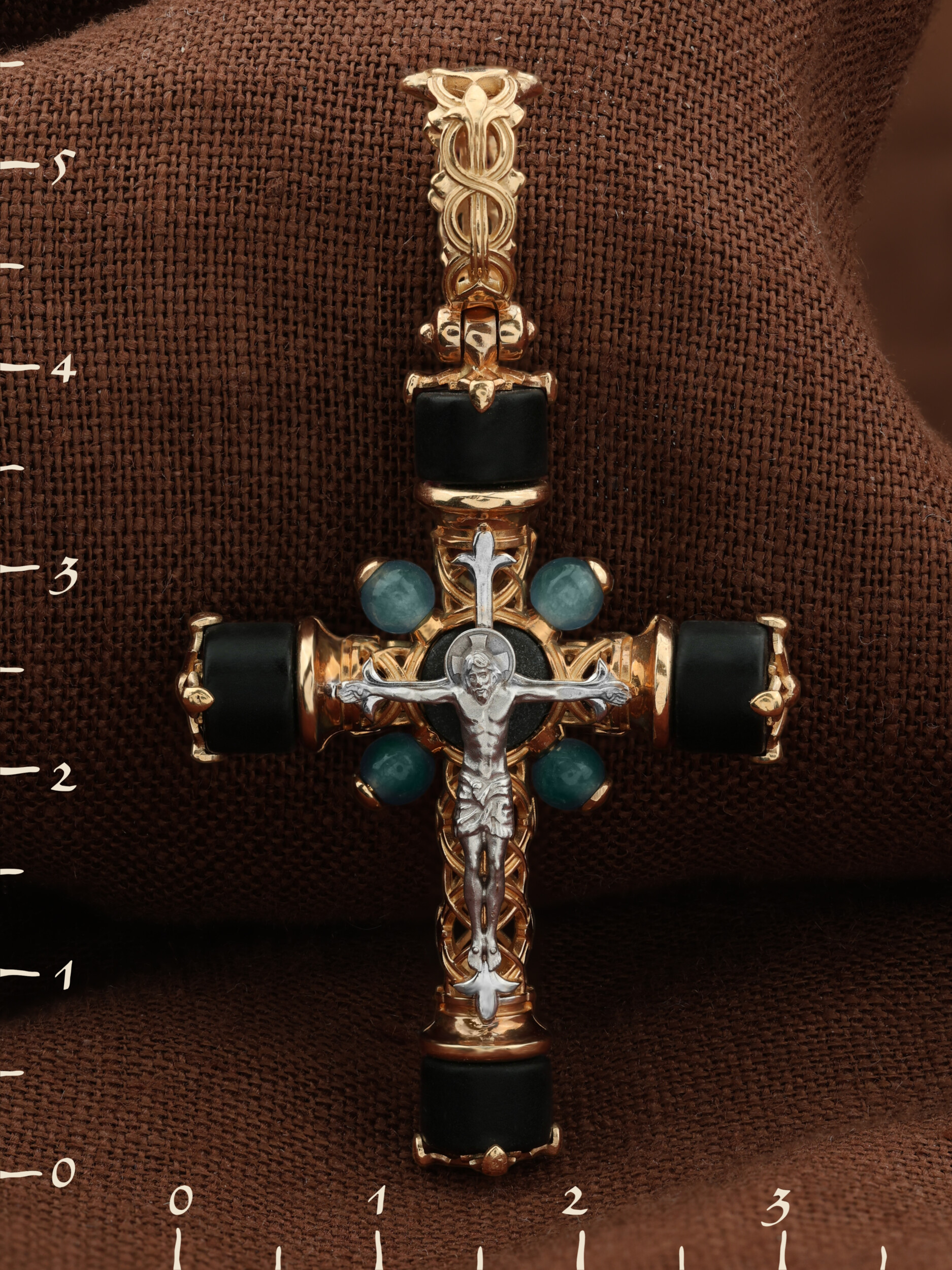 Крест из золота c ониксом и жадеитом