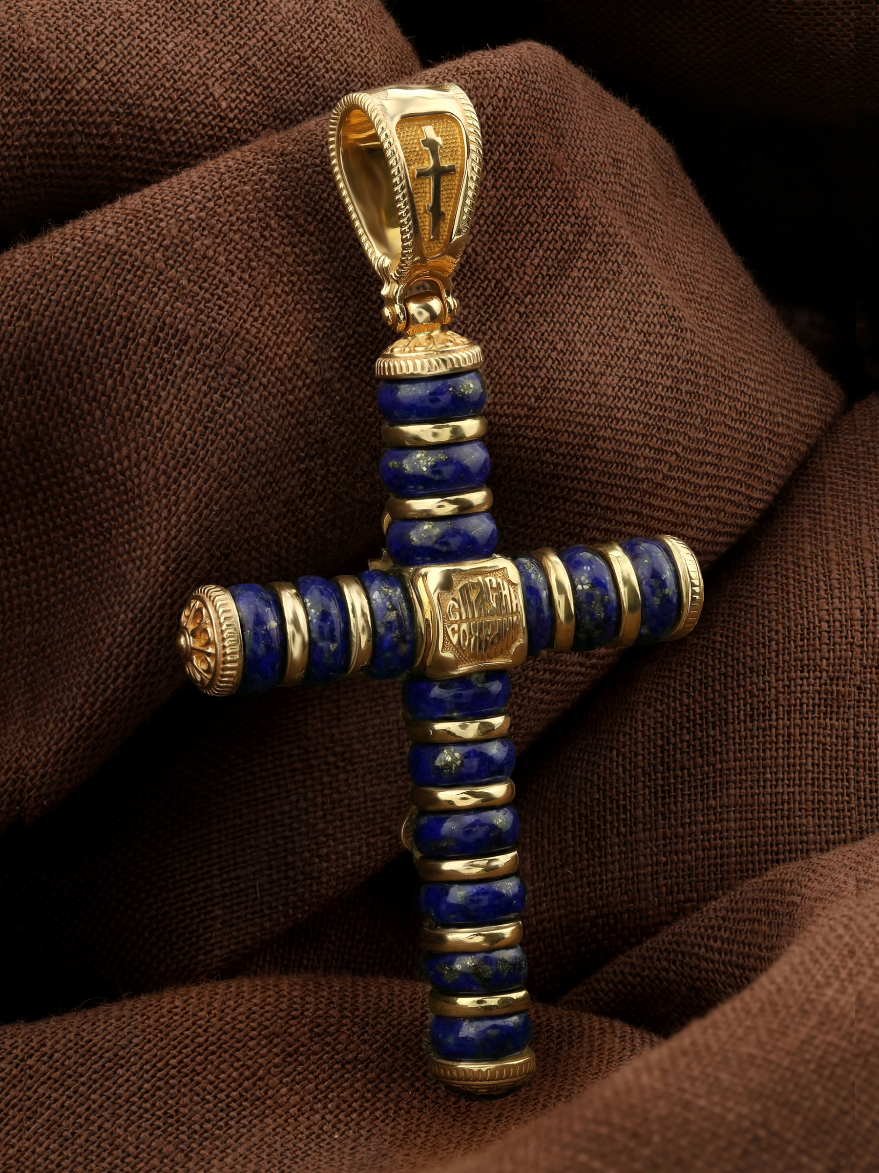 Крест из лимонного золота c лазуритом