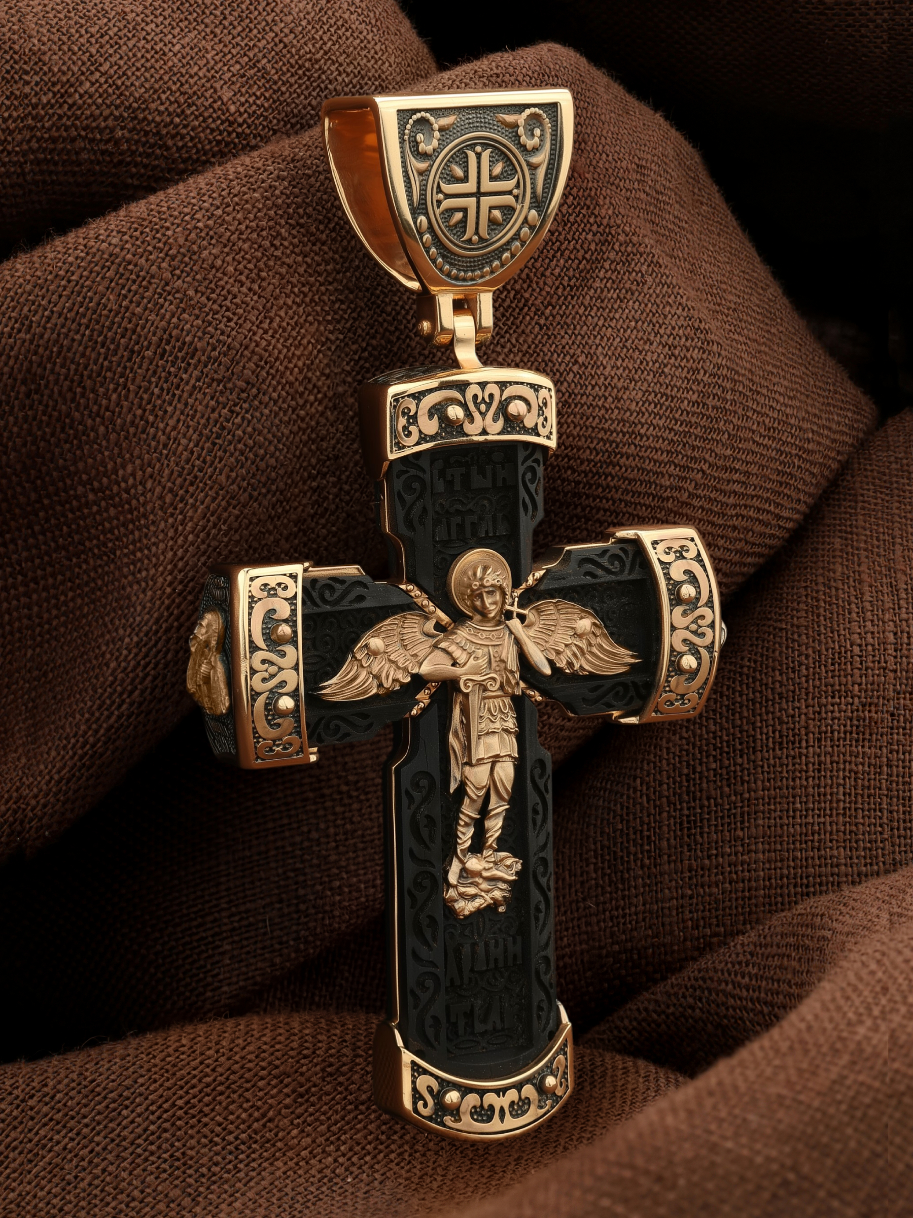 Крест из золота c эбеновым деревом