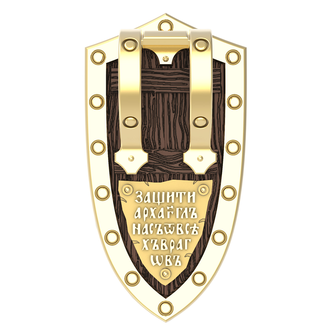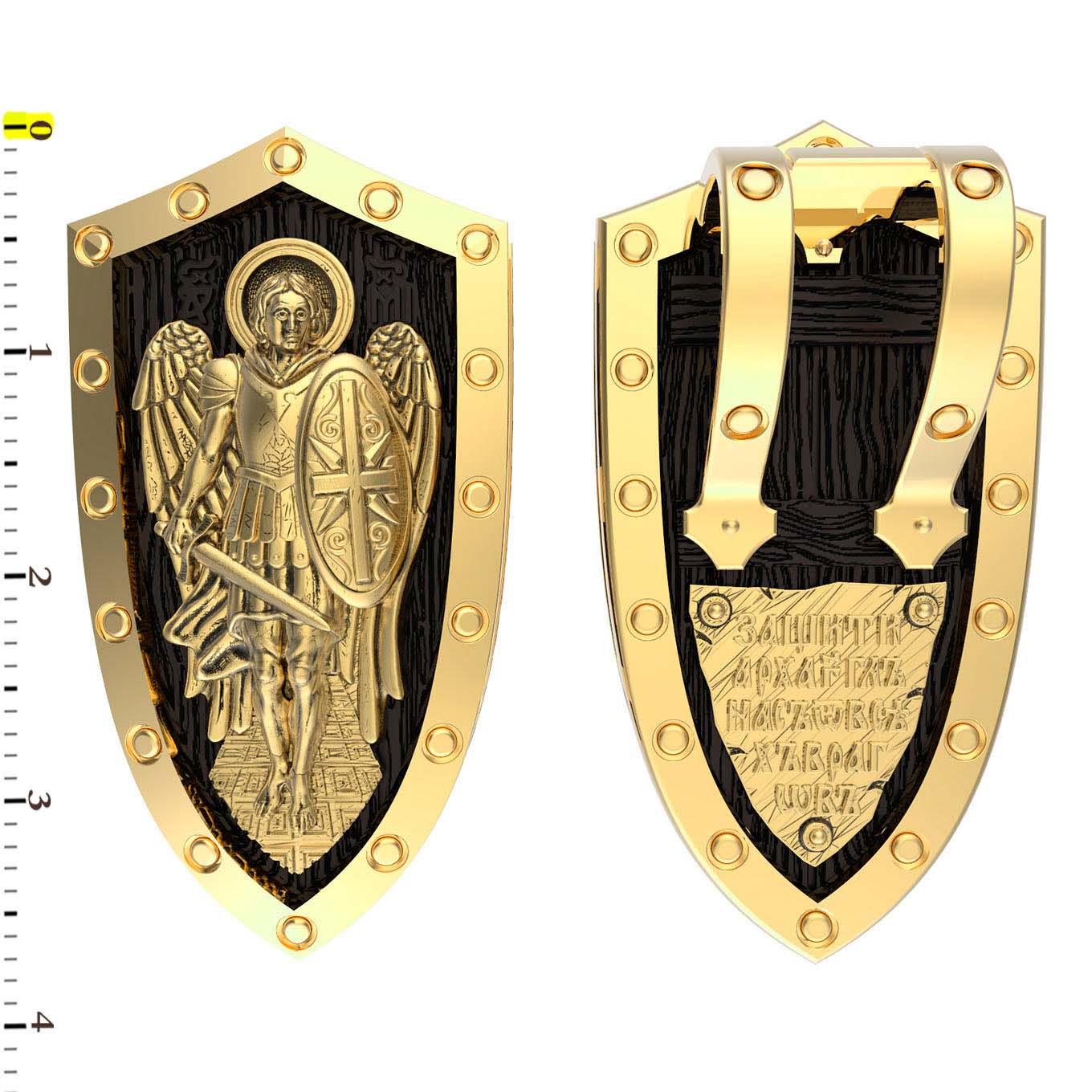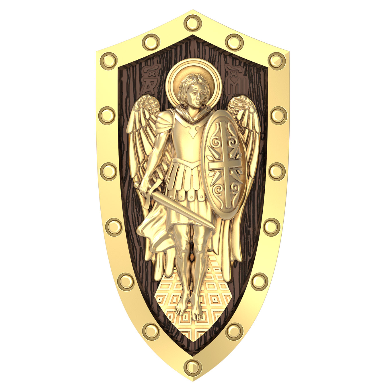 На лицевой стороне образка изображение Архангела Михаила — верного служителя Божия, который низринул с Неба возгордившегося денницу с другими павшими духами. В Православии его называют Архистратигом, что означает глава святого воинства Ангелов и Архангелов. Образок сделан в виде воинского щита. Архангел Михаил изображен в воинственном виде с огненным мечом в правой руке и щитом в левой. Архангел почитается как покровитель воинов и всех верных Богу и ведущих борьбу против сил зла, борец против ересей, а также защитник душ умерших, страж райских врат. С древних времен прославлен своими чудесами Архангел Михаил на Руси. Примеров явления и помощи Архистратига Михаила в русской истории бессчетно. Архангел Михаил не перестает ратоборствовать за славу Творца и Господа всяческих, за дело спасения рода человеческого, за церковь и чад ее. И, согласно, Откровению Иоанна Богослова во время последней битвы небесных и дьявольских сил Михаил и его ангелы опять низвергнут Люцифера вместе с его войском: «Михаил и Ангелы его воевали против дракона, и дракон и ангелы его воевали [против них], но не устояли, и не нашлось уже для них места на небе. И низвержен был великий дракон, древний змий, называемый диаволом и сатаною, обольщающий всю вселенную, низвержен на землю, и ангелы его низвержены с ним» (Откр.12:7−9).