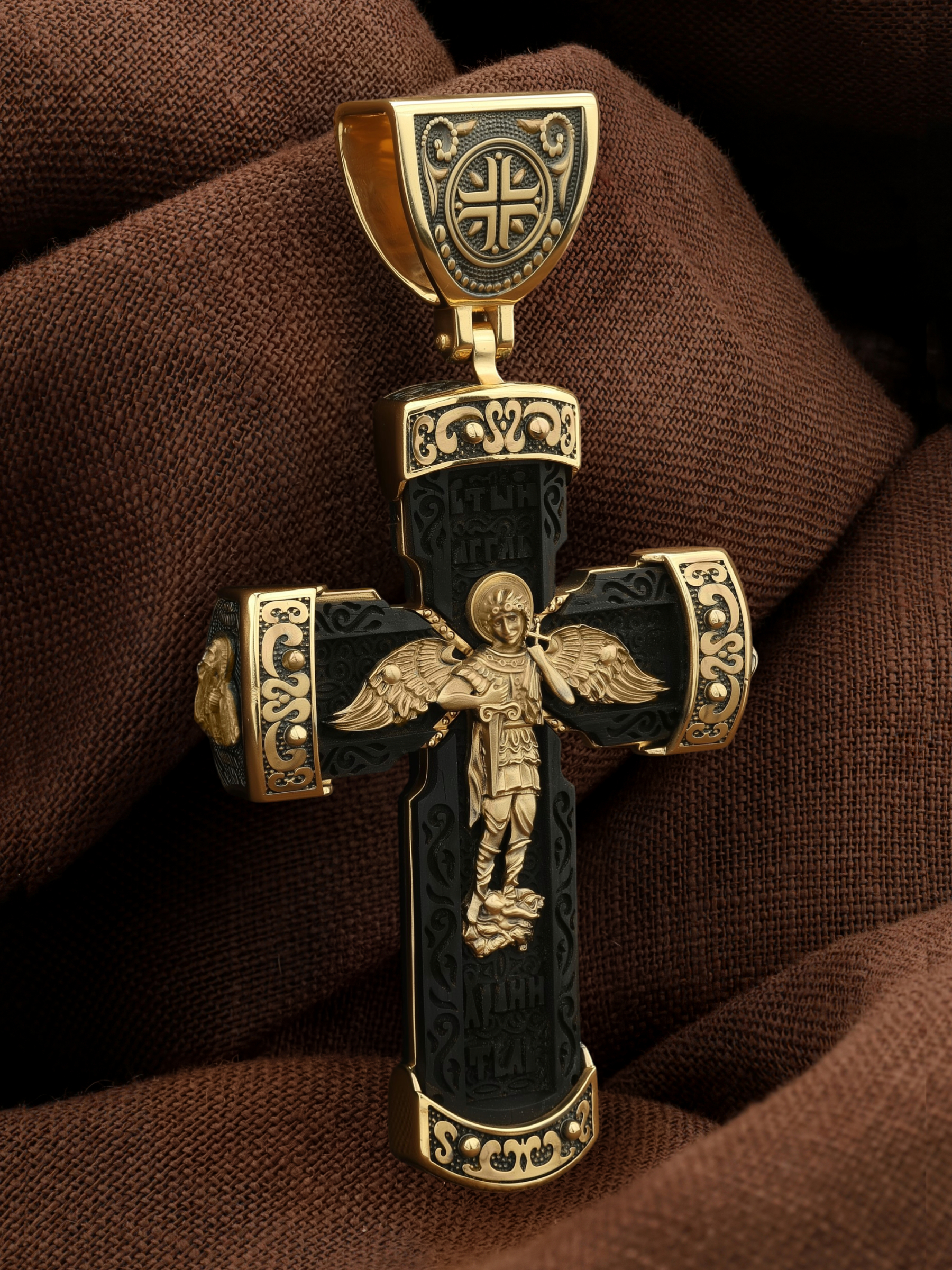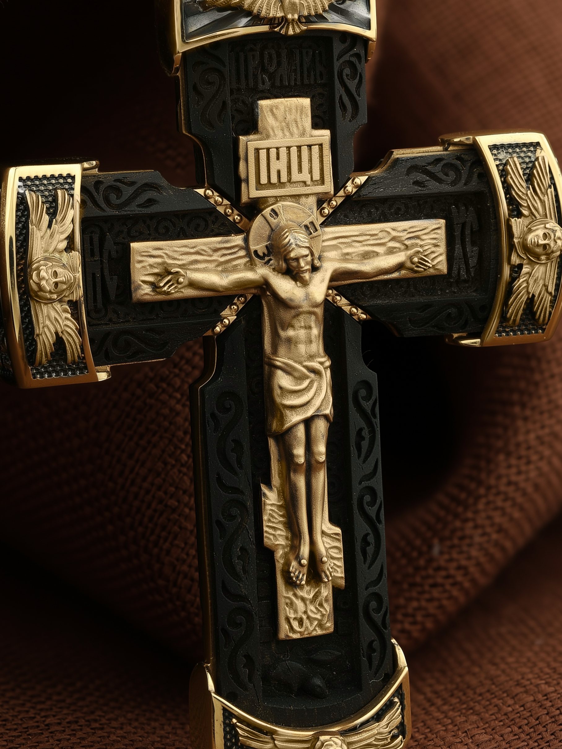 Крест из лимонного золота c эбеновым деревом