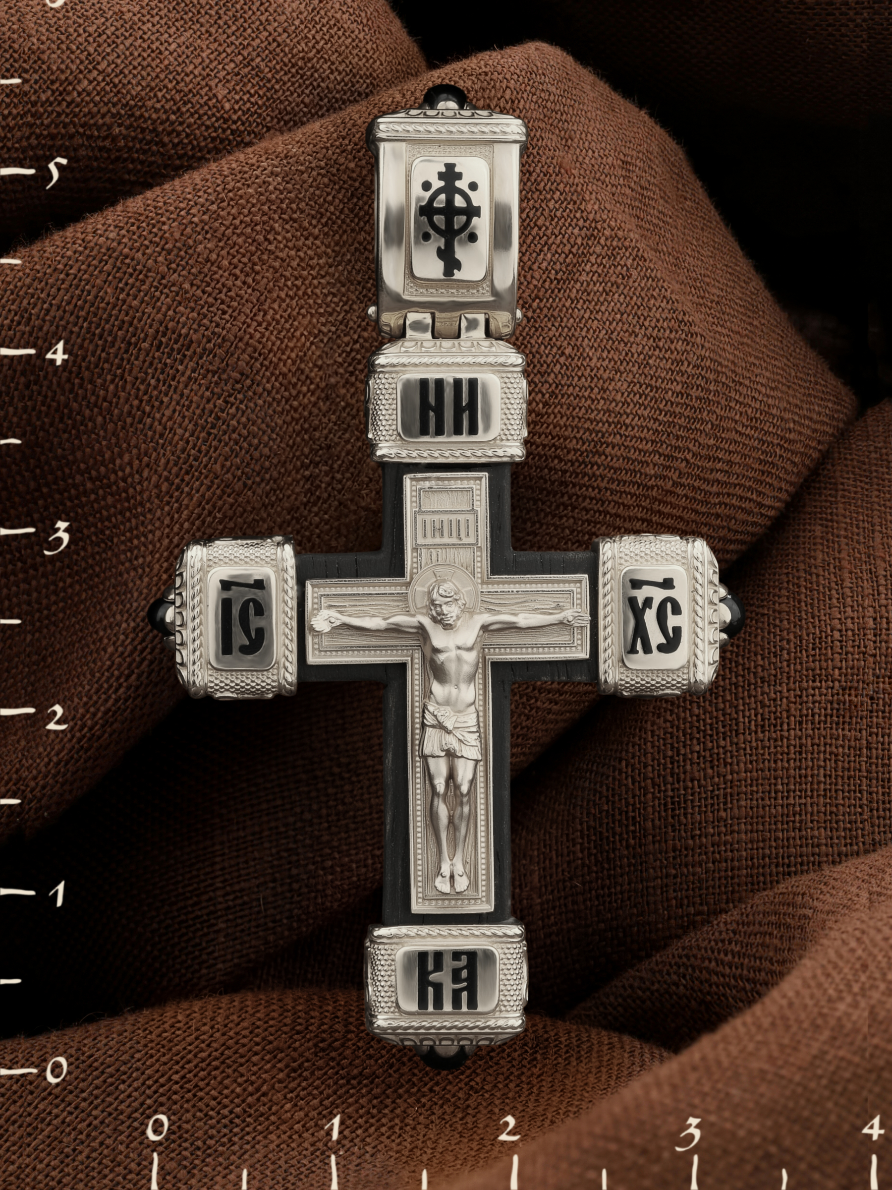 Крест из белого золота c эмалью, ониксом и эбеновым деревом