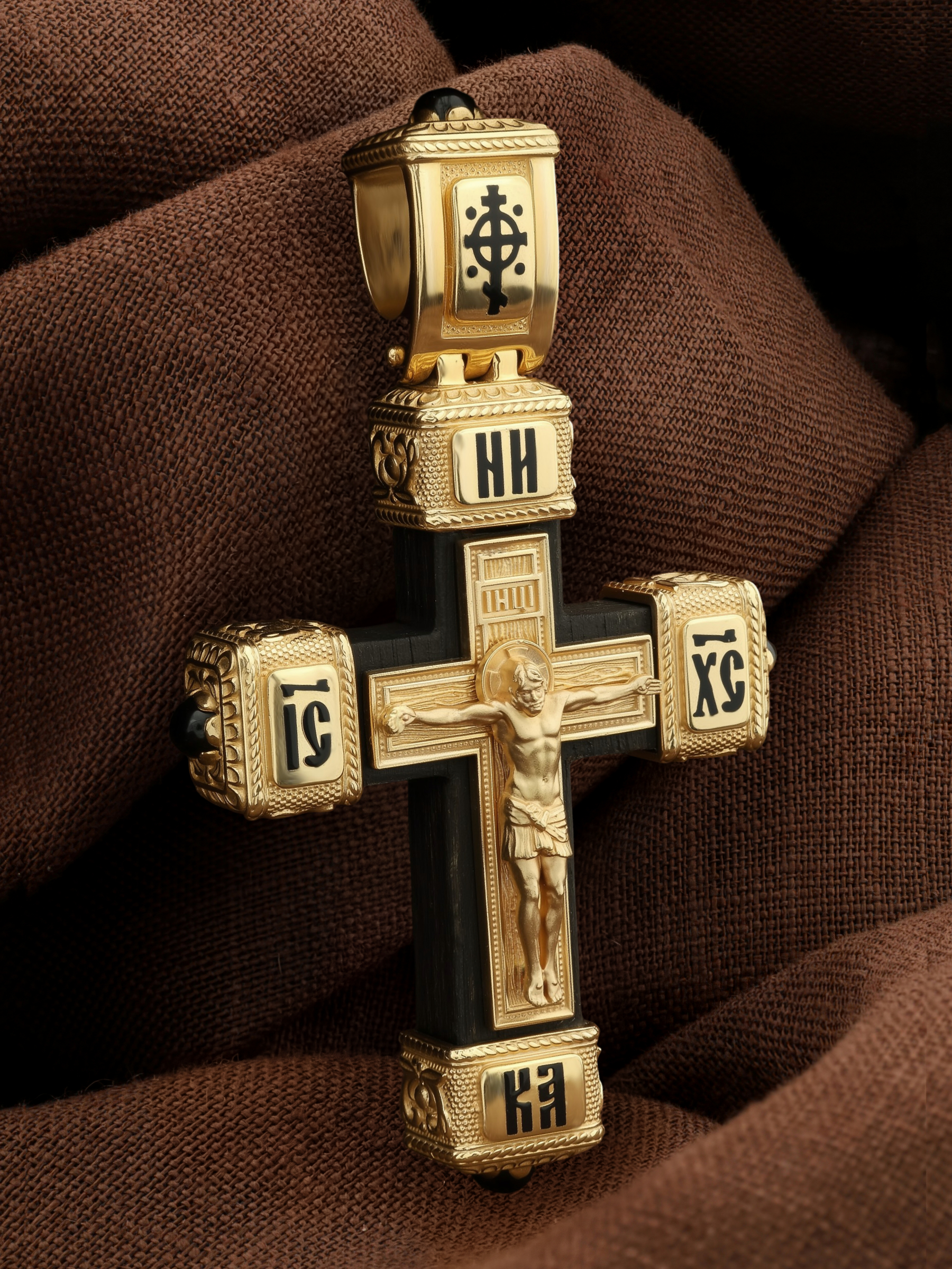 Крест из лимонного золота c эмалью, ониксом и эбеновым деревом