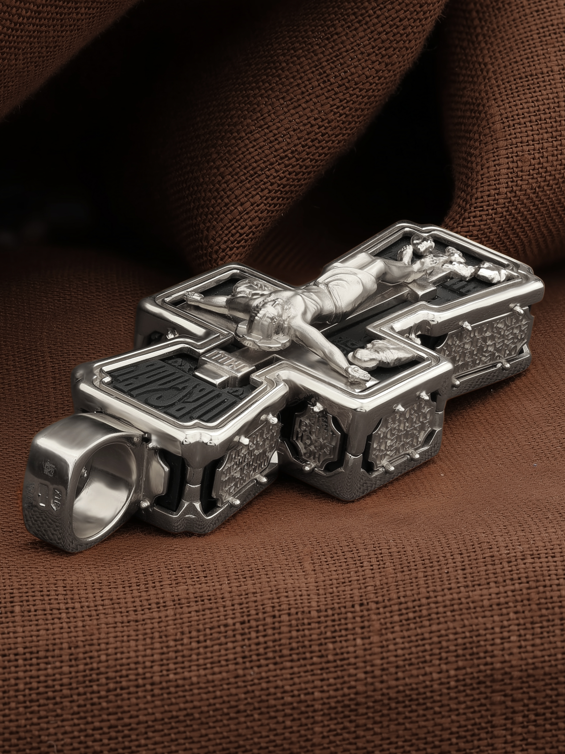 Крест из белого золота c эбеновым деревом