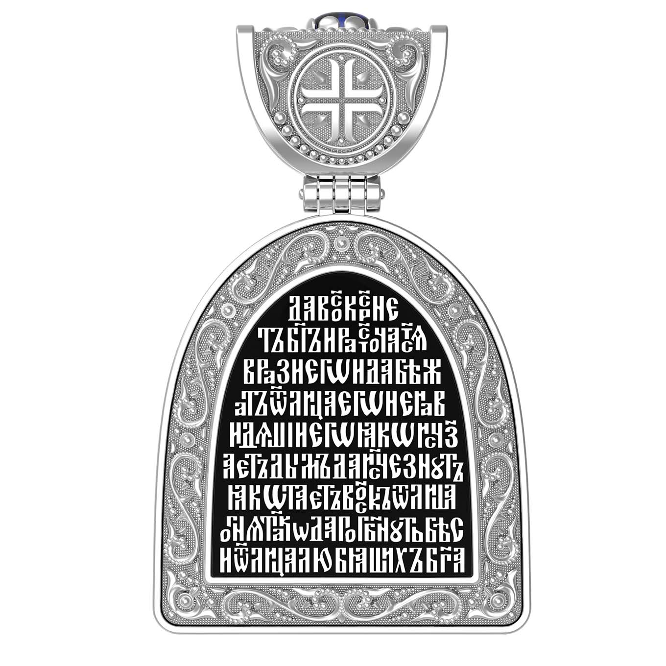 Образок из белого золота c эмалью, сапфиром и бивнем мамонта
