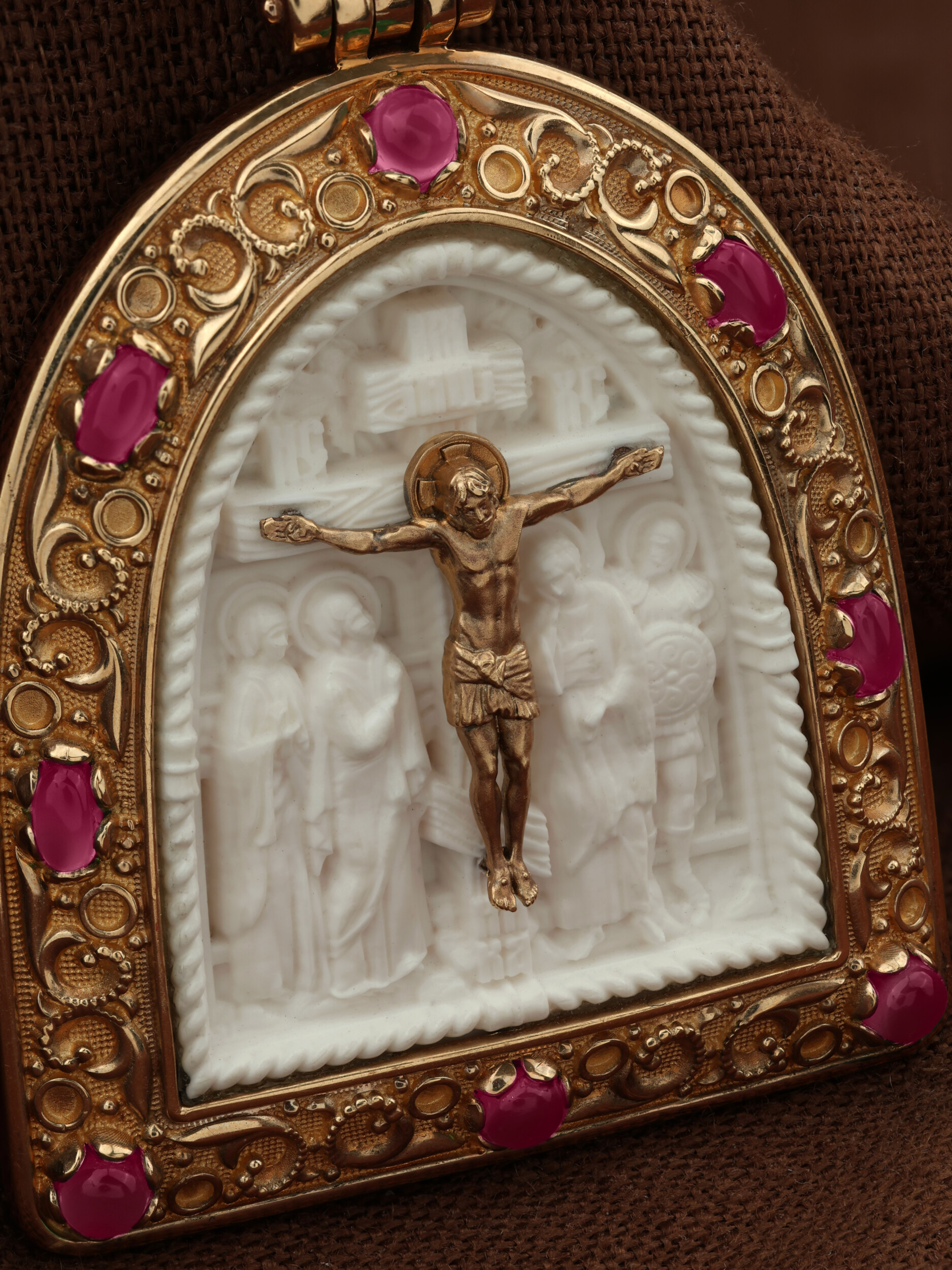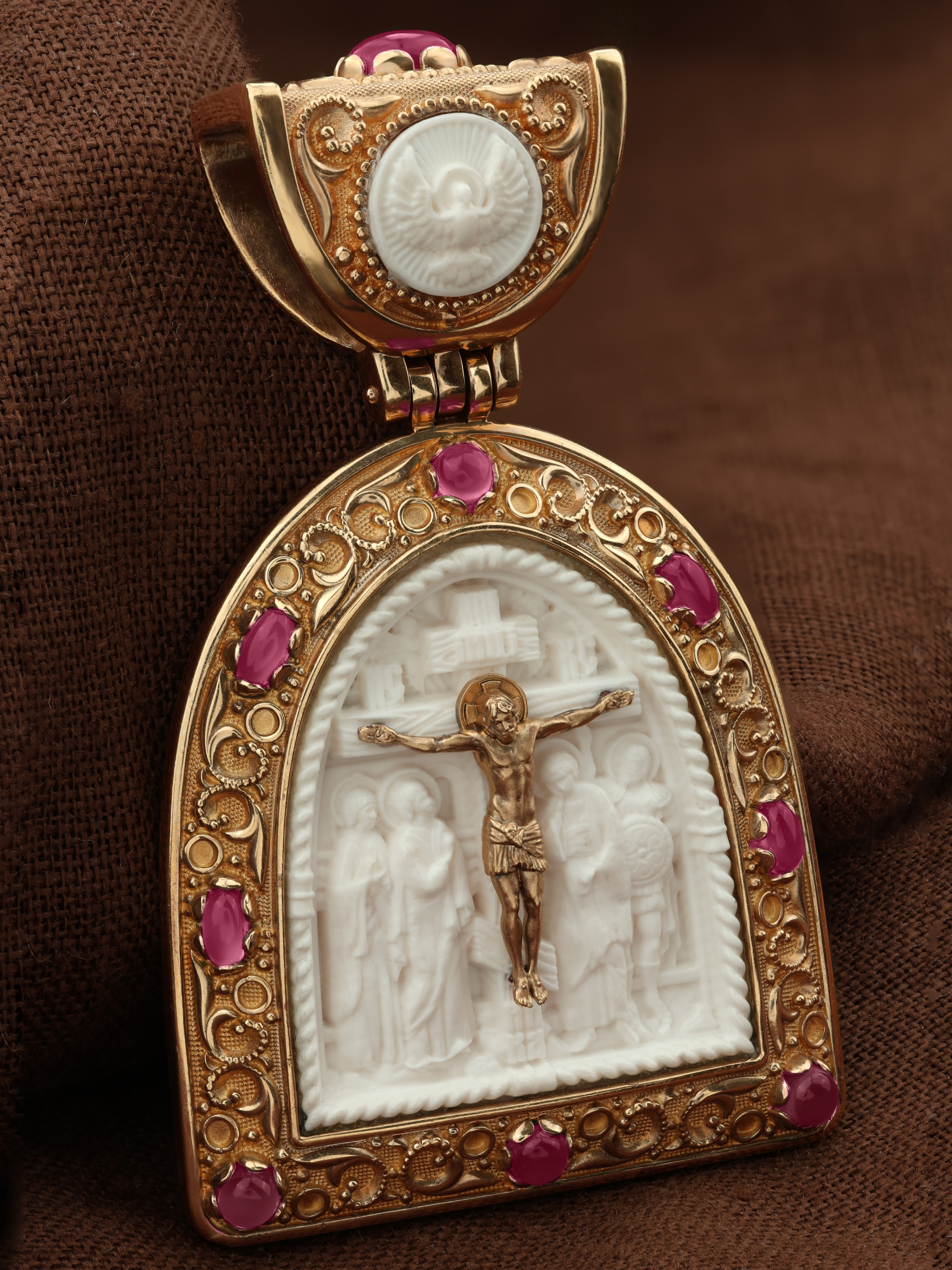 Образок из золота c эмалью, рубином и бивнем мамонта