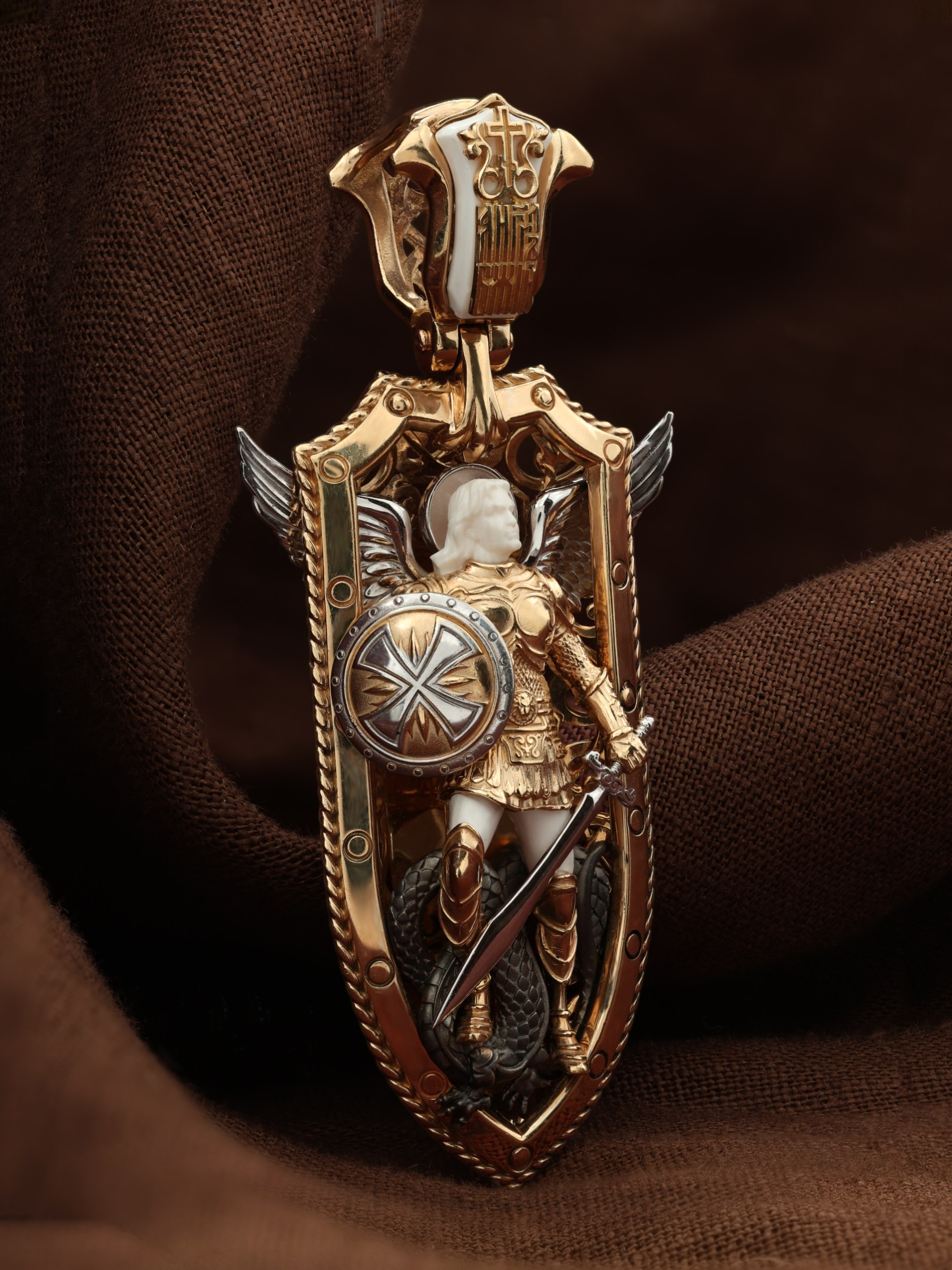 Образок из золота c эмалью и бивнем мамонта