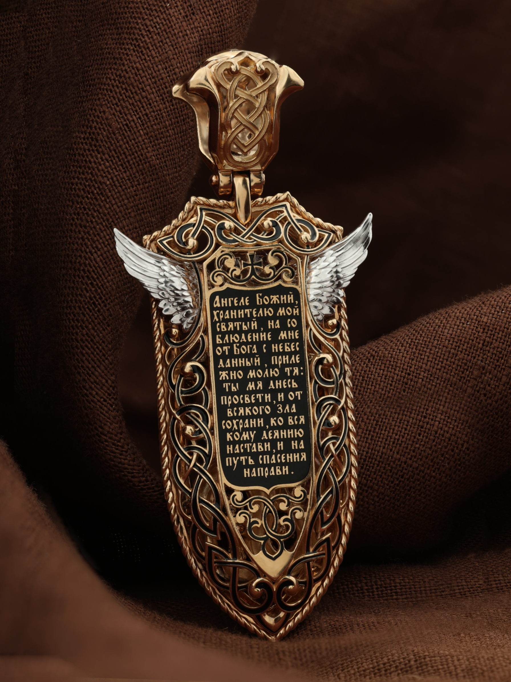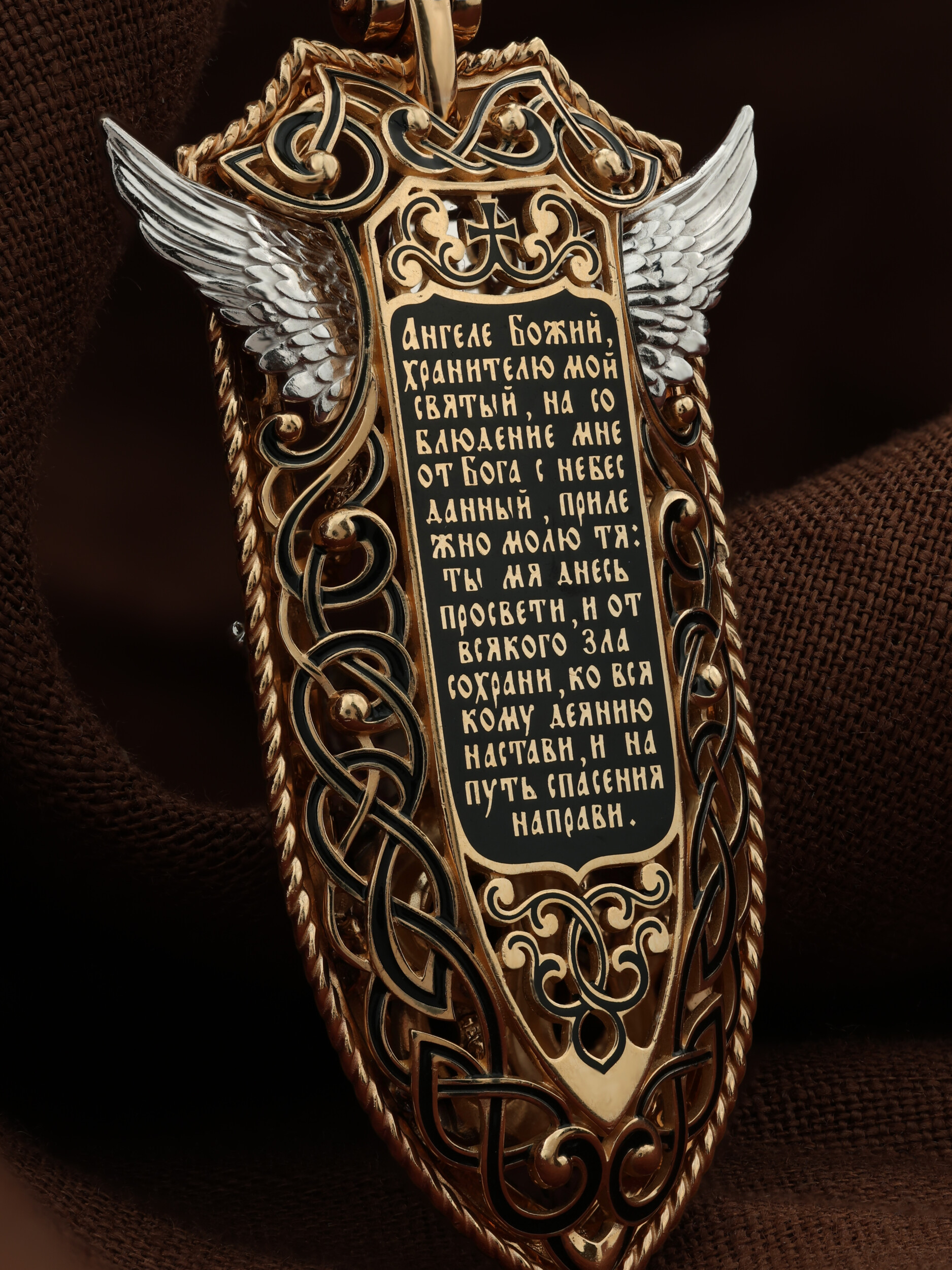 На оборотной стороне образка написана молитва: «Ангеле Божий, хранителю мой святый, на соблюдение мне от Бога с небесе данный! Прилежно молю тя: ты мя днесь просвети, и от всякаго зла сохрани, ко благому деянию настави, и на путь спасения направи.»