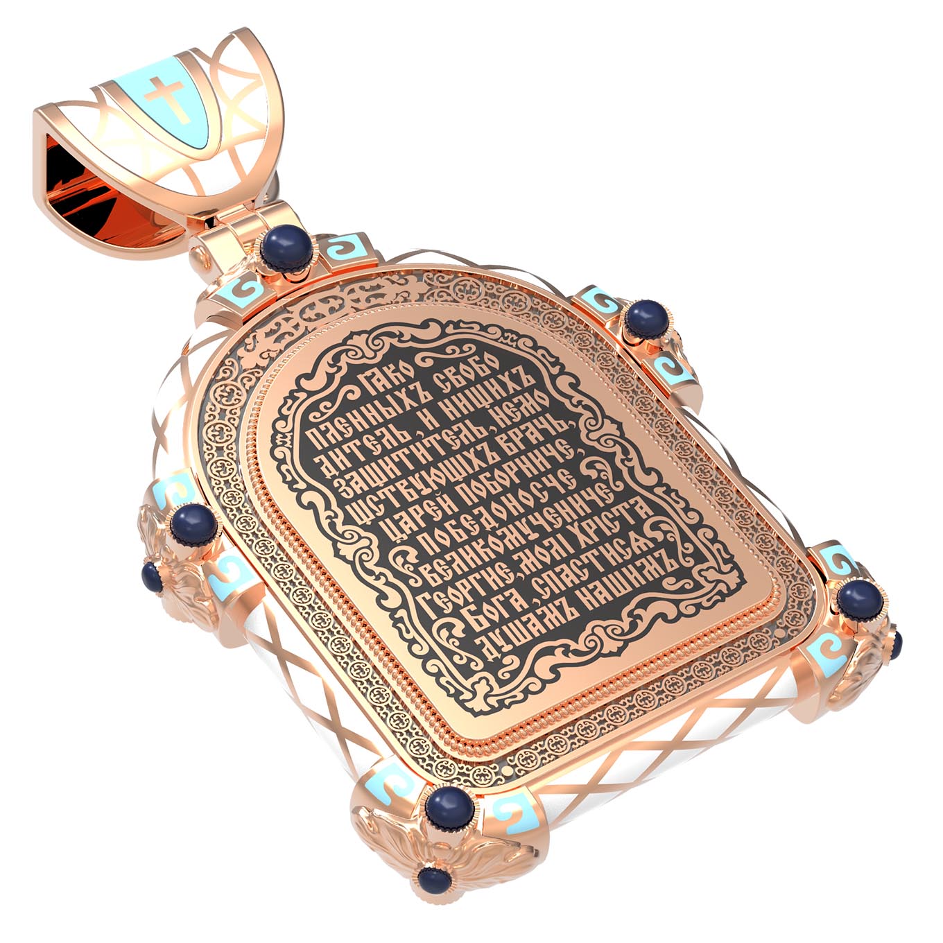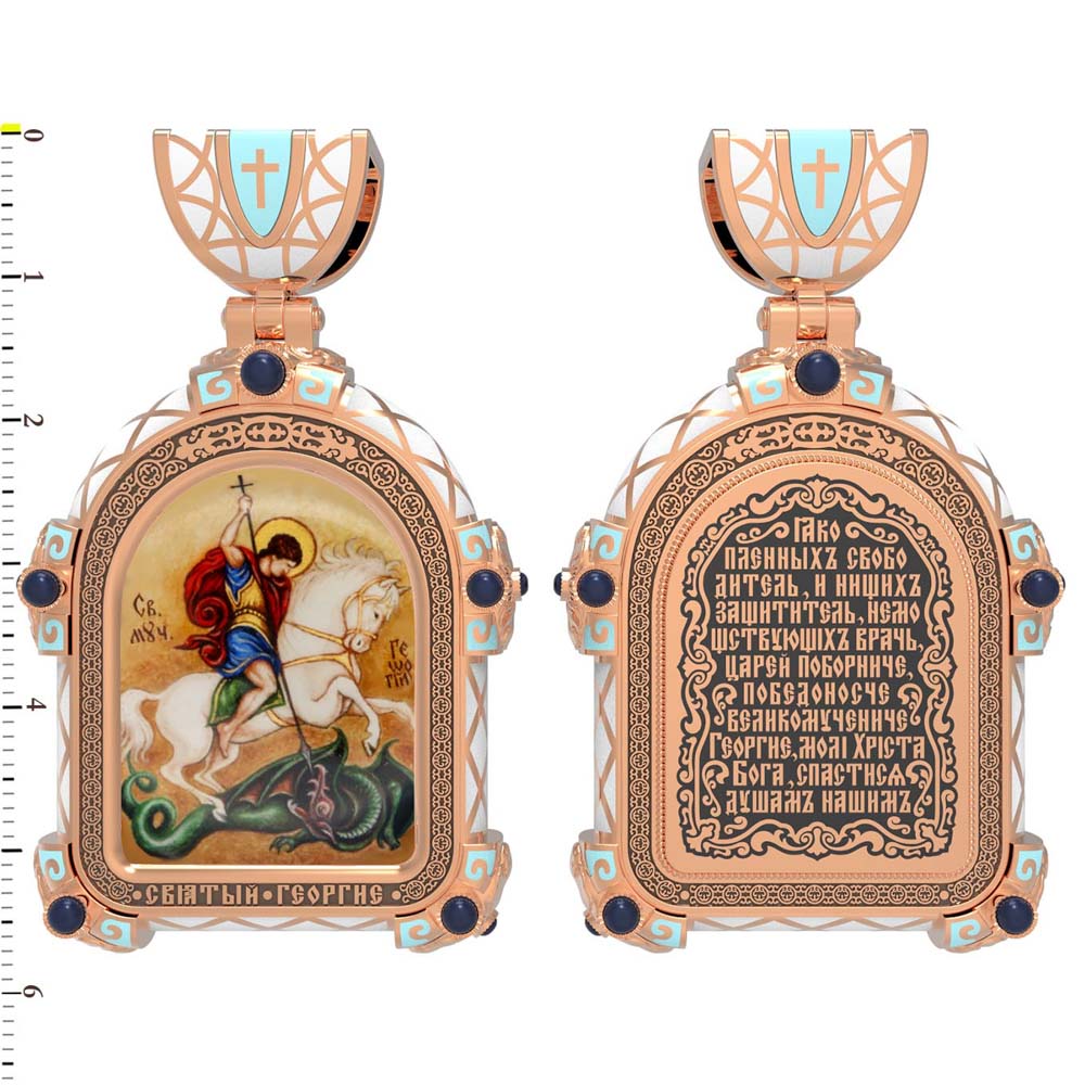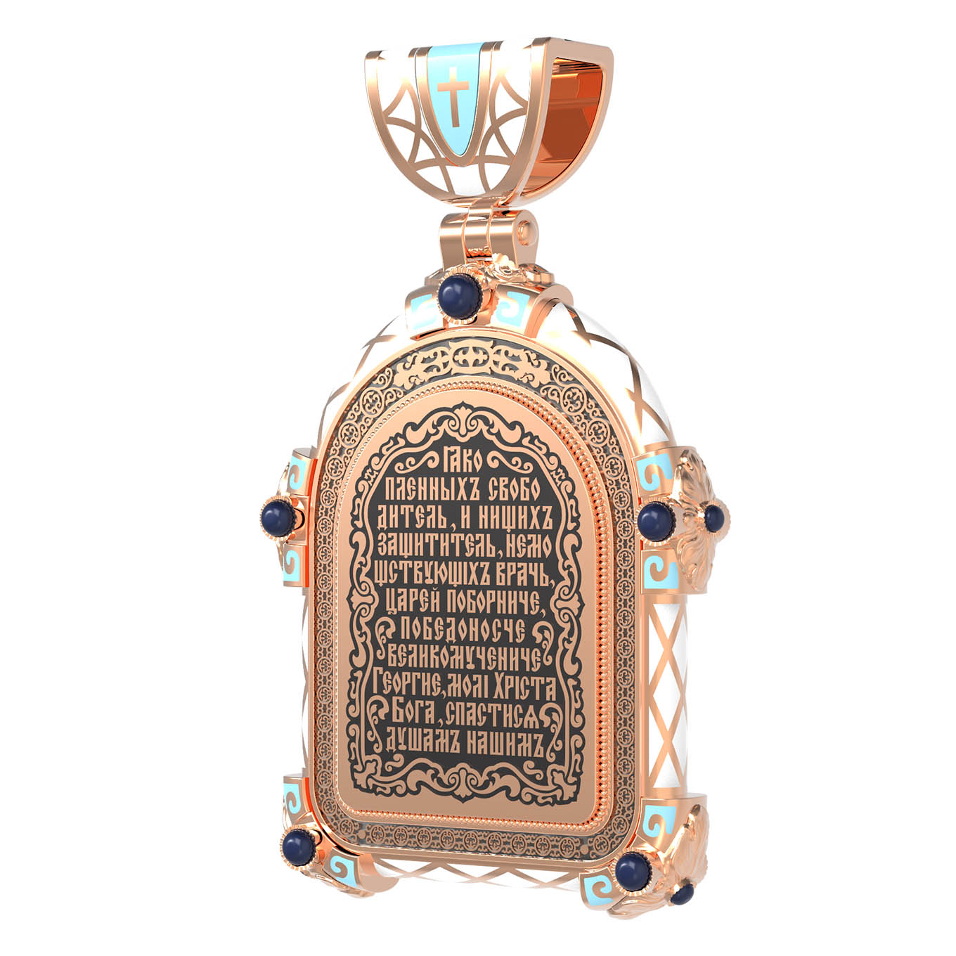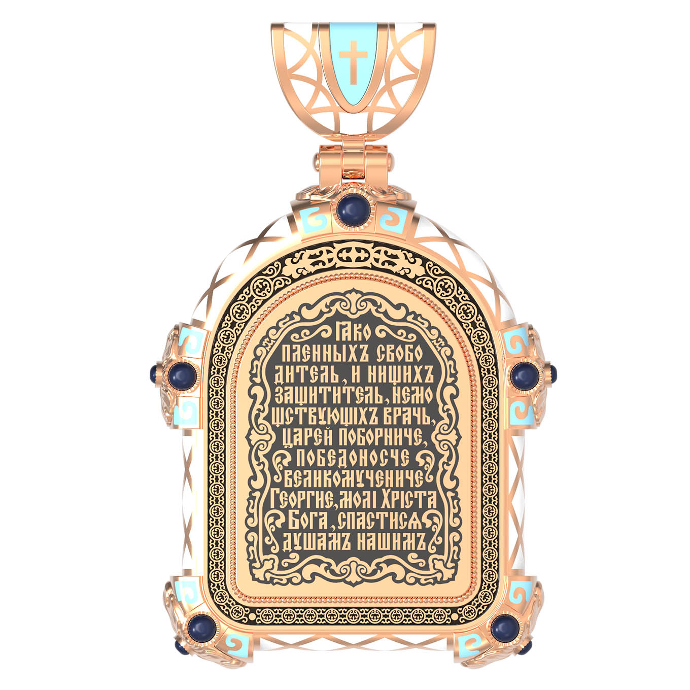На обороте написана молитва: «Яко пленных свободитель, и нищих защититель, немощствующих врач, православных поборниче, победоносче великому чениче Георгие, моли Христа Бога спастися душам нашим.»