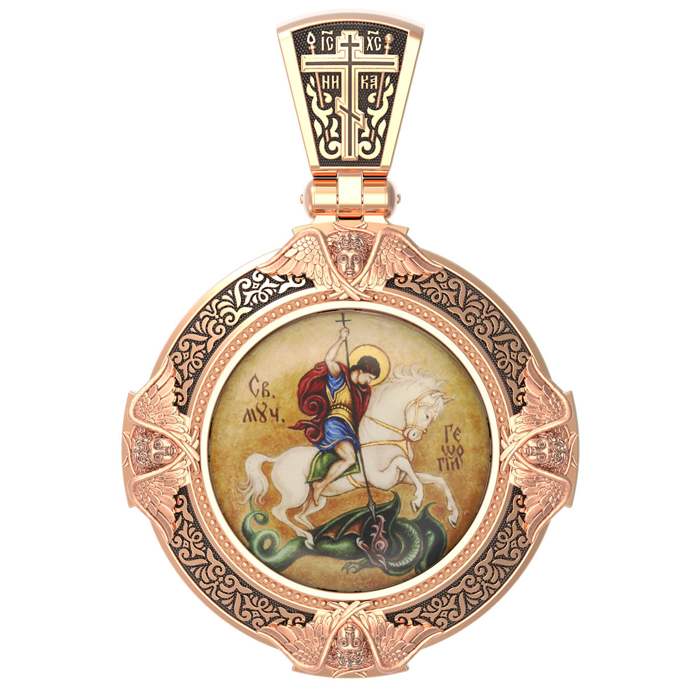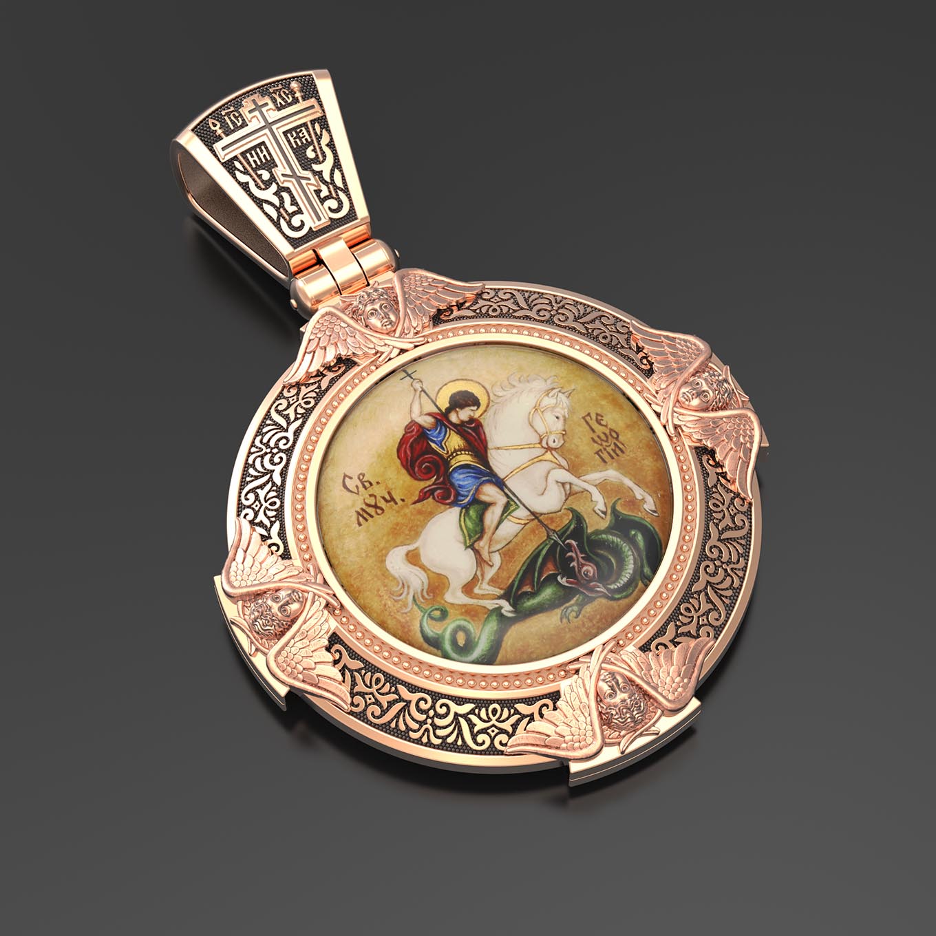 Образок из золота c эмалью, иконописью и темперой