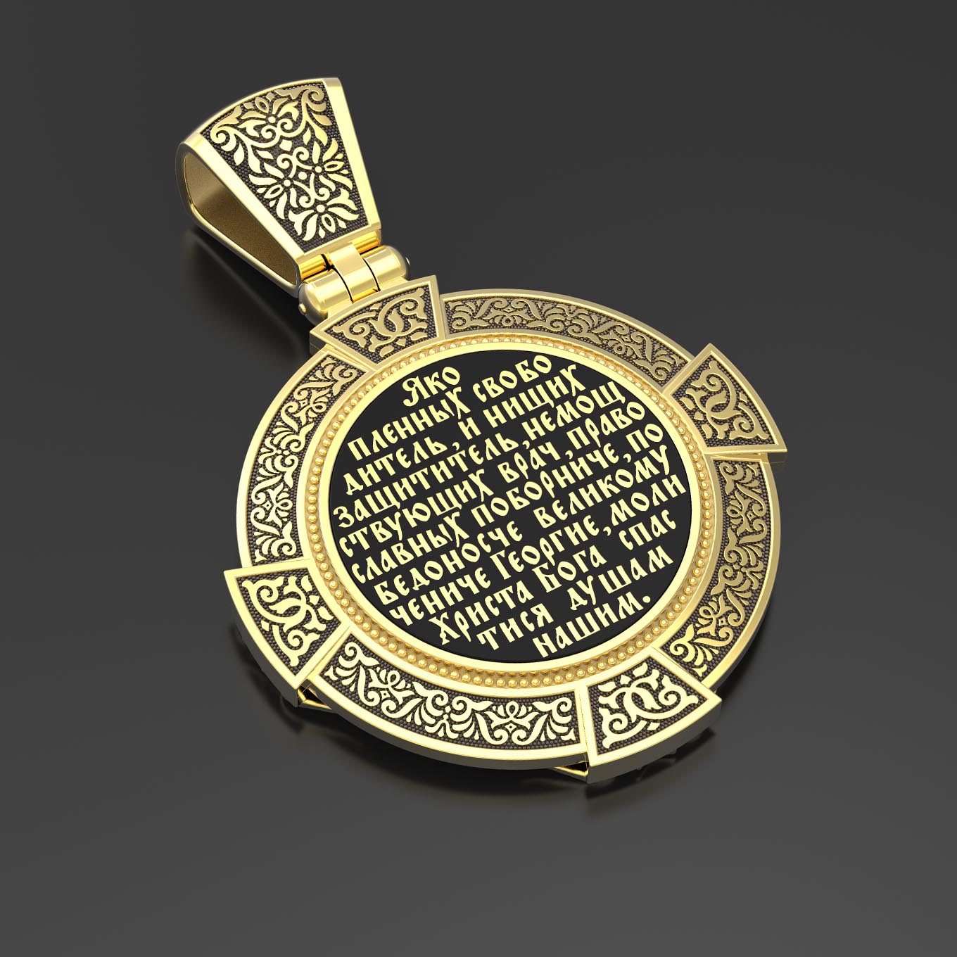 На обороте написана молитва"Яко пленных свободитель, и нищих защититель, немощствующих врач, православных поборниче, победоносче великому чениче Георгие, моли Христа Бога спастися душам нашим.»