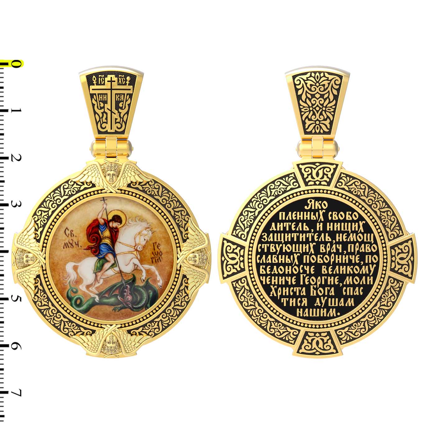 Образ Великомученика считают одним из наиболее чтимых Святынь, в Святыни Православных он олицетворяет собой заступника для верующих, чья жизнь имеет какое-либо отношение к военным делам, также он может оберегать и землевладельцев. Одно из самых великих чудес которое сотворил Великомученик так это — спасения всего города от устрашающего змия. Молитвами и своей непреклонной верой, взываемой к Всевышнему, он смог одолеть чудовище. Святой убил змея, спас жителей и их души от влияния дьявола, породив в них надежду и веру в Господа, призывая людей принять христианскую веру. Поскольку при жизни Святой Георгий был военным, он считается покровителем всех, кто имеет отношение к армии — военнослужащим, участникам боевых действий. Молитва перед иконой Георгия Победоносца поможет защититься от врагов, одержать победу в сражении (военном, спортивном, духовной брани с дьяволом), содействие в установлении мира между членами семьи, избавиться от телесного недуга.