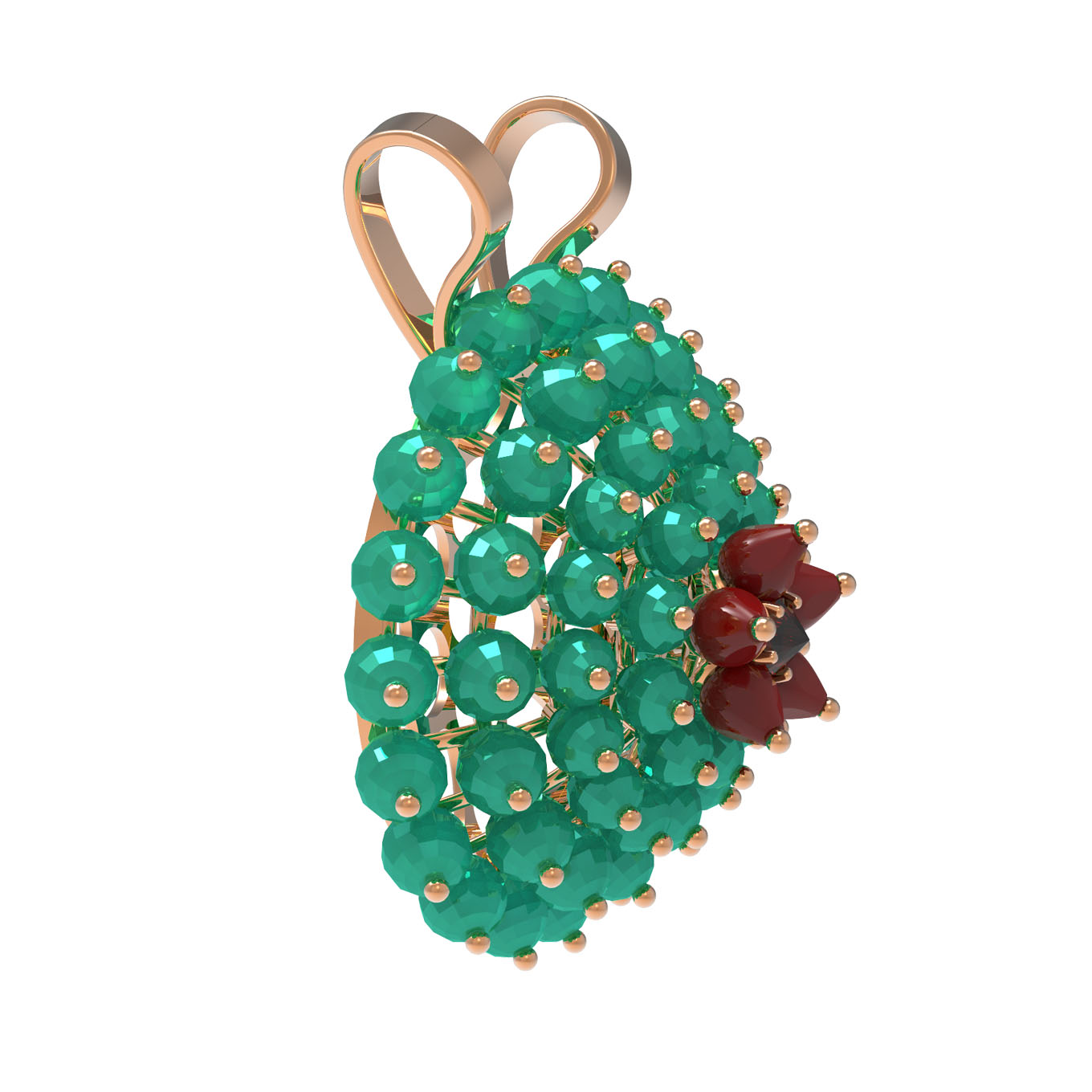 Подвеска из золота c гранатом, хризопразом и кораллом