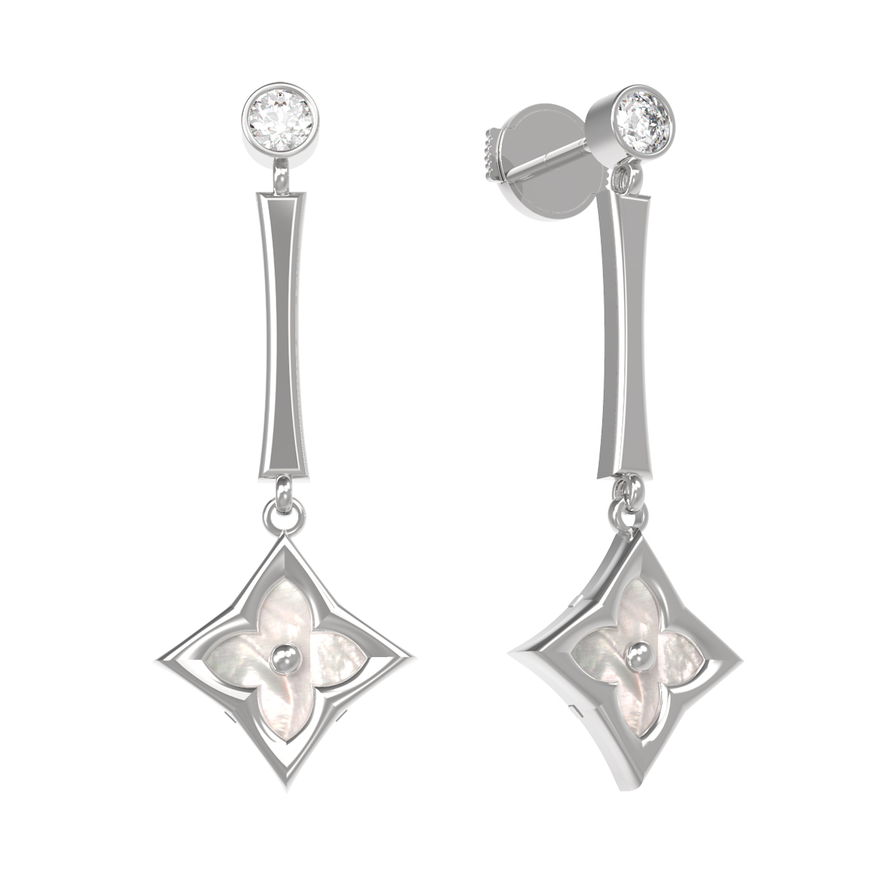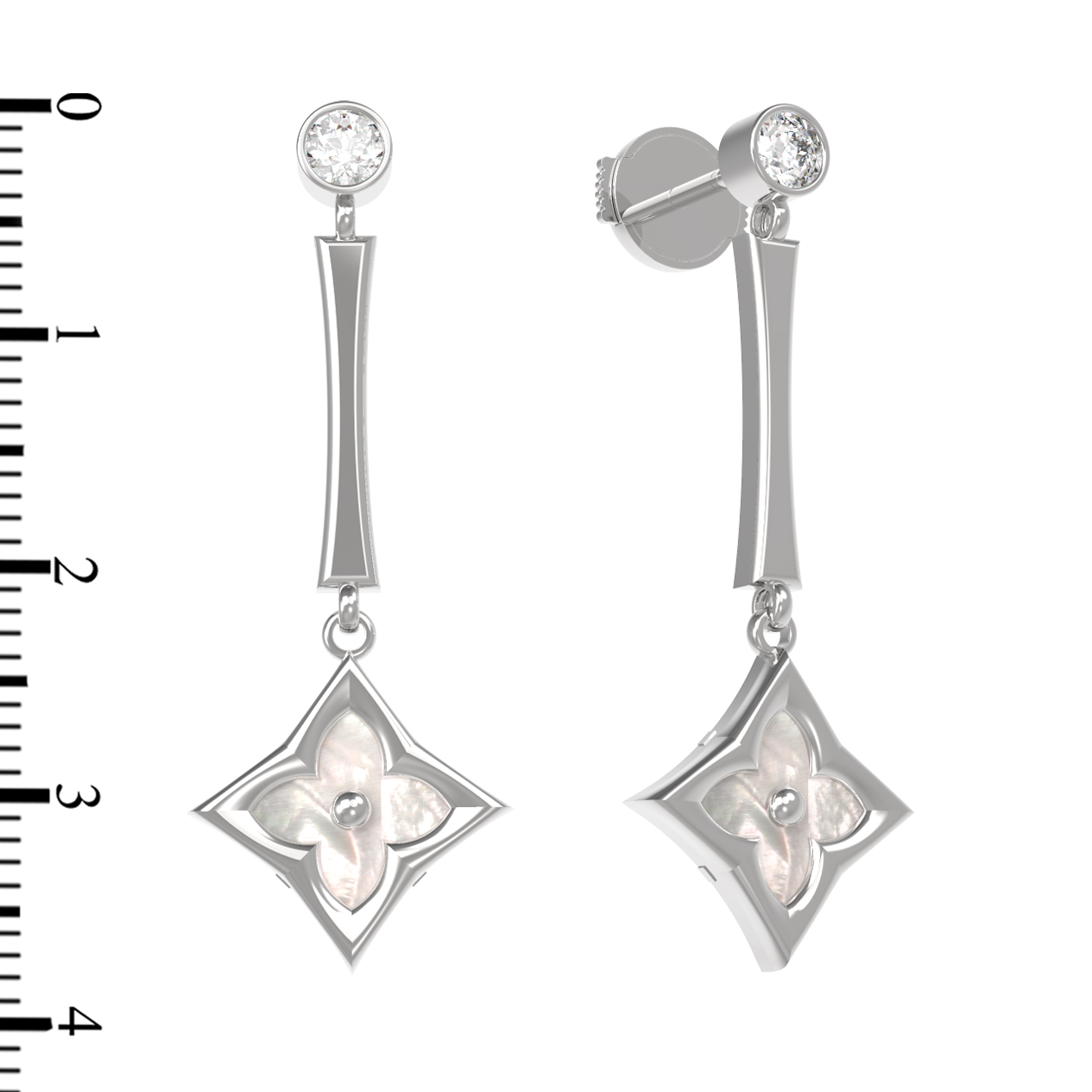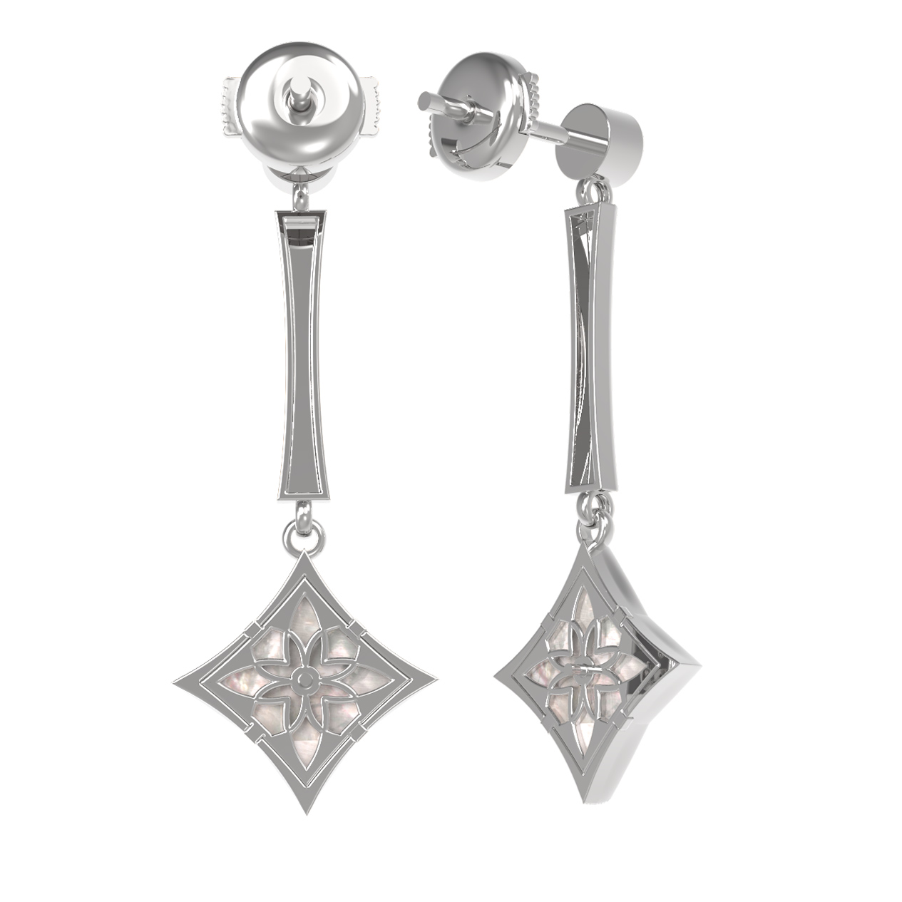 Серьги из белого золота c фианитом и перламутром