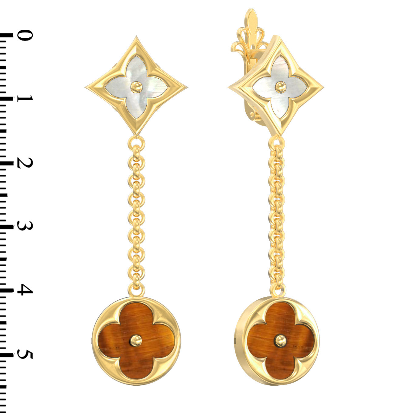 Серьги из лимонного золота c тигровым глазом и перламутром