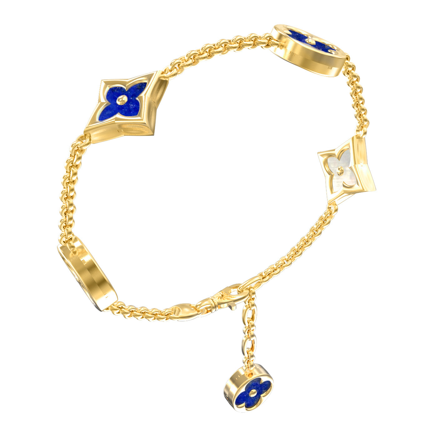 Браслет из лимонного золота c лазуритом и перламутром