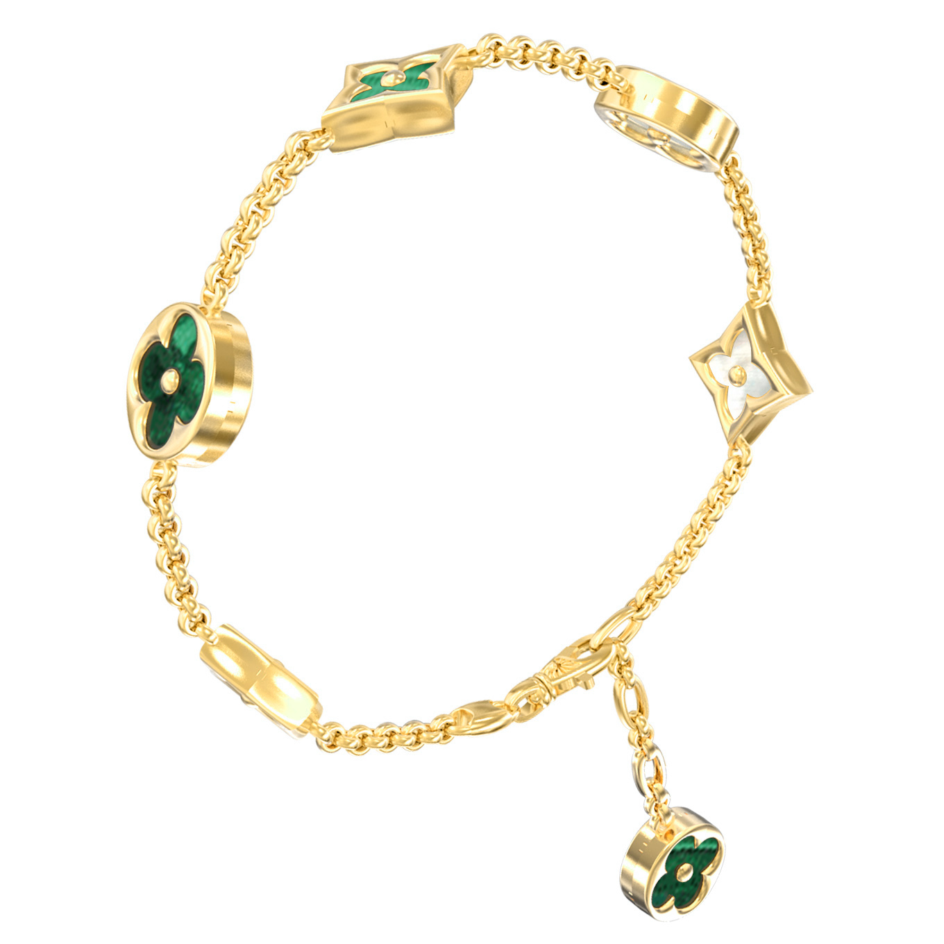 Браслет из лимонного золота c малахитом и перламутром