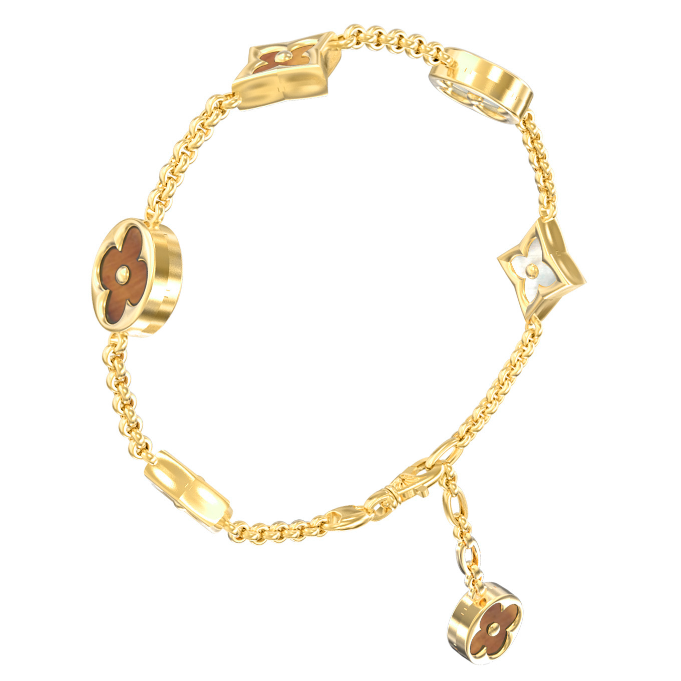 Браслет из лимонного золота c тигровым глазом и перламутром