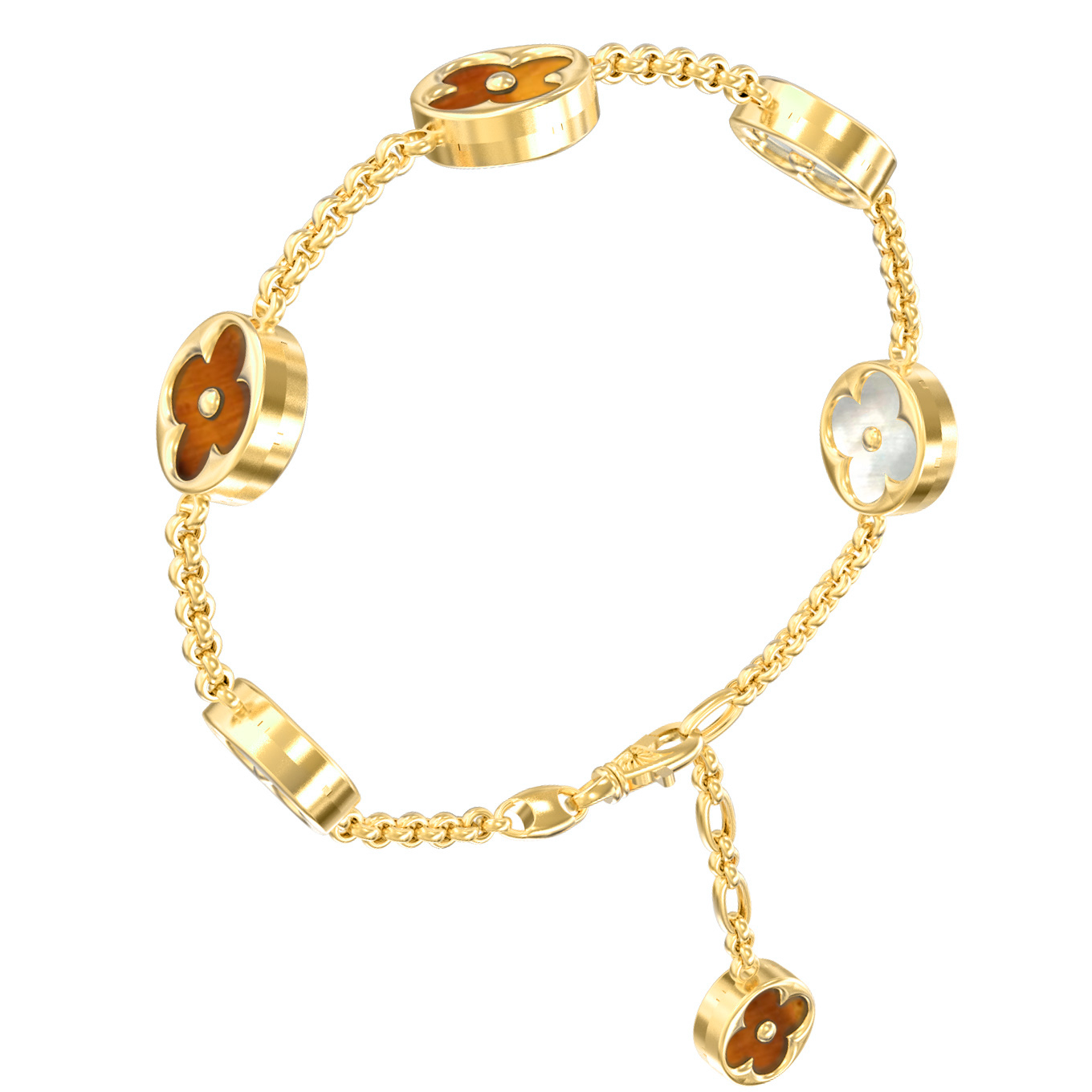 Браслет из лимонного золота c тигровым глазом и перламутром