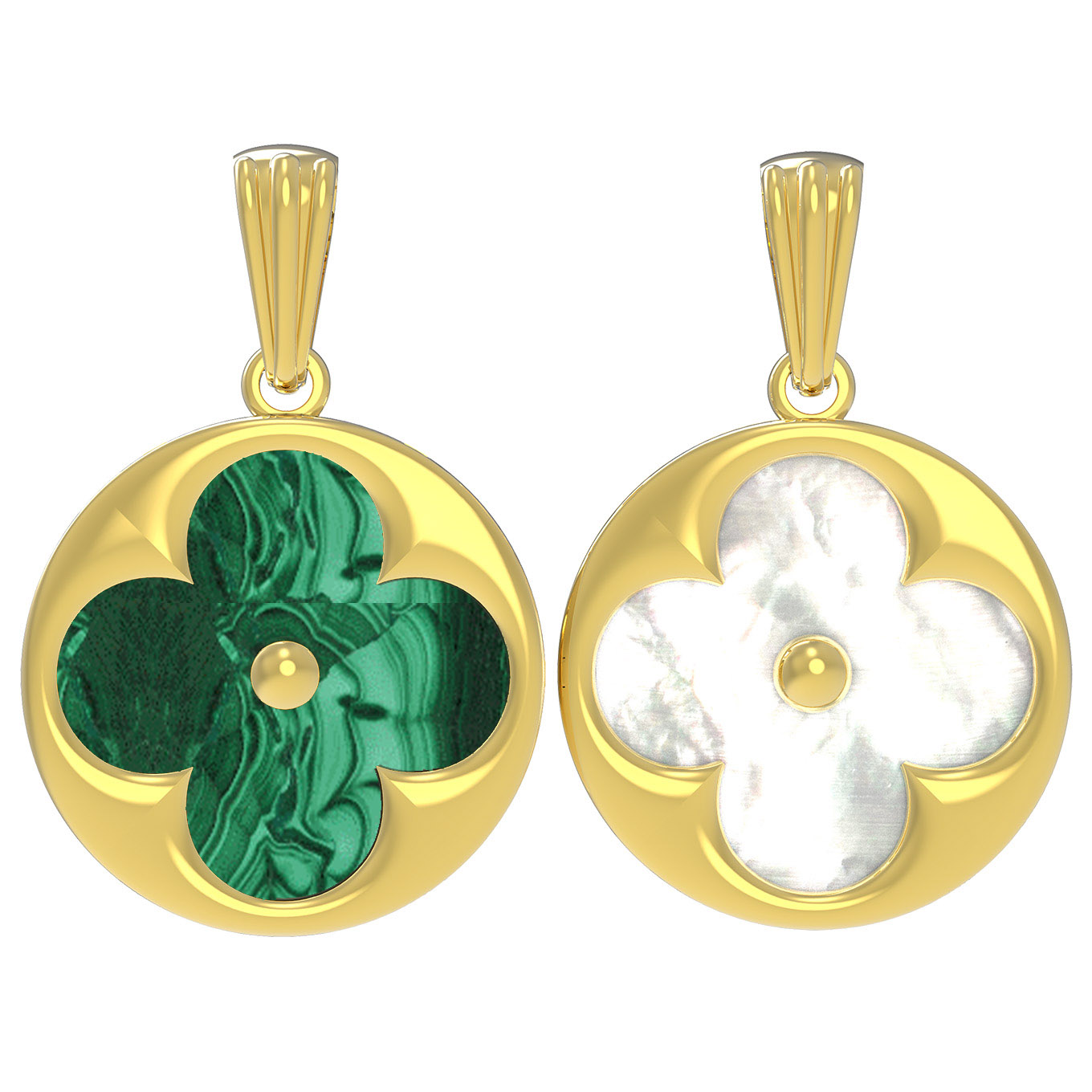 Подвеска из лимонного золота c малахитом и перламутром