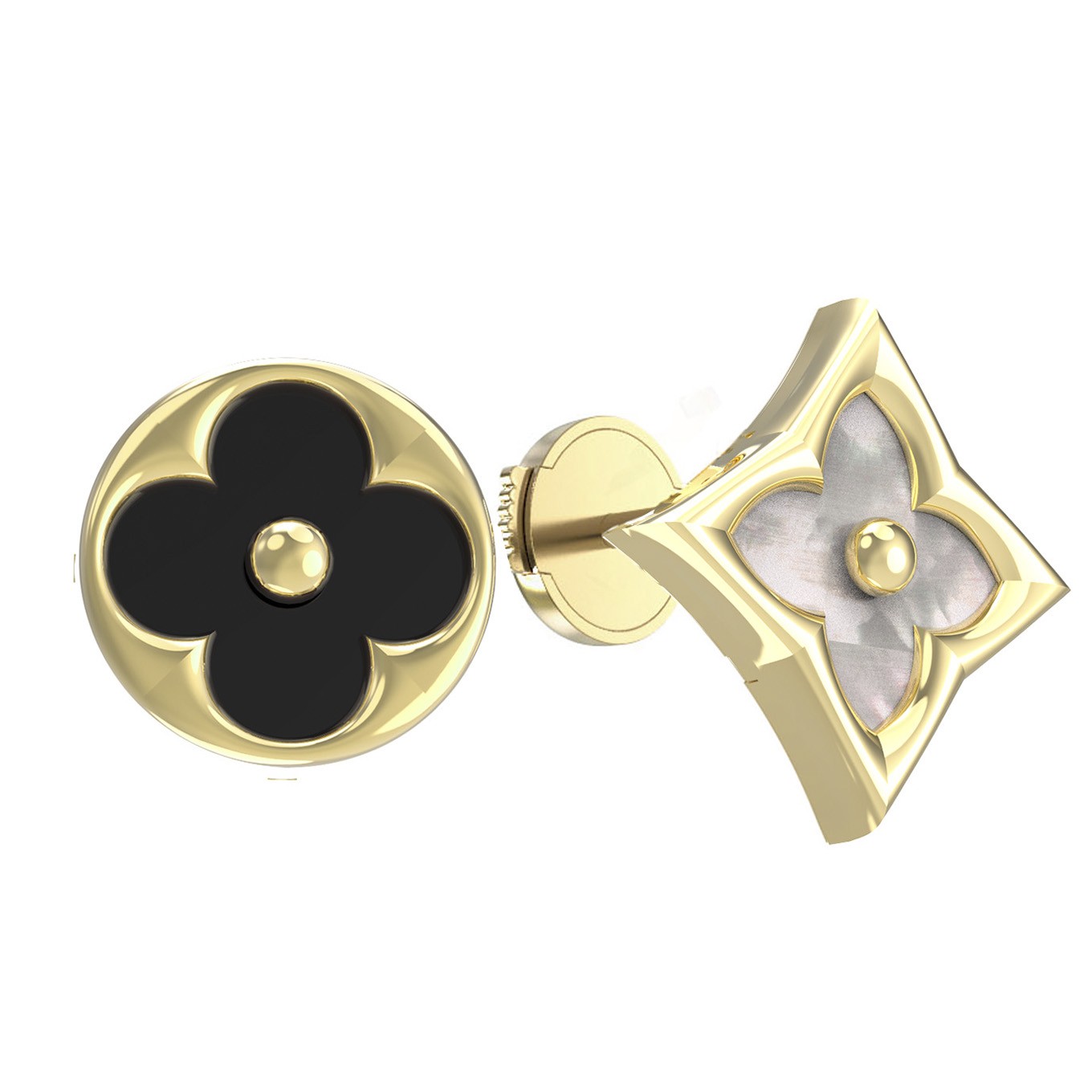 Серьги из лимонного золота c ониксом и перламутром