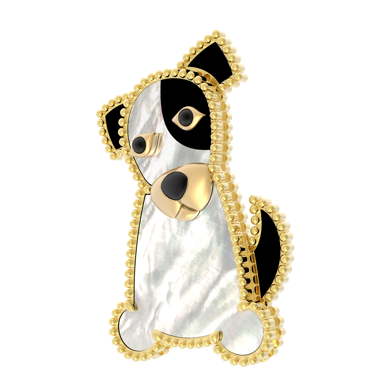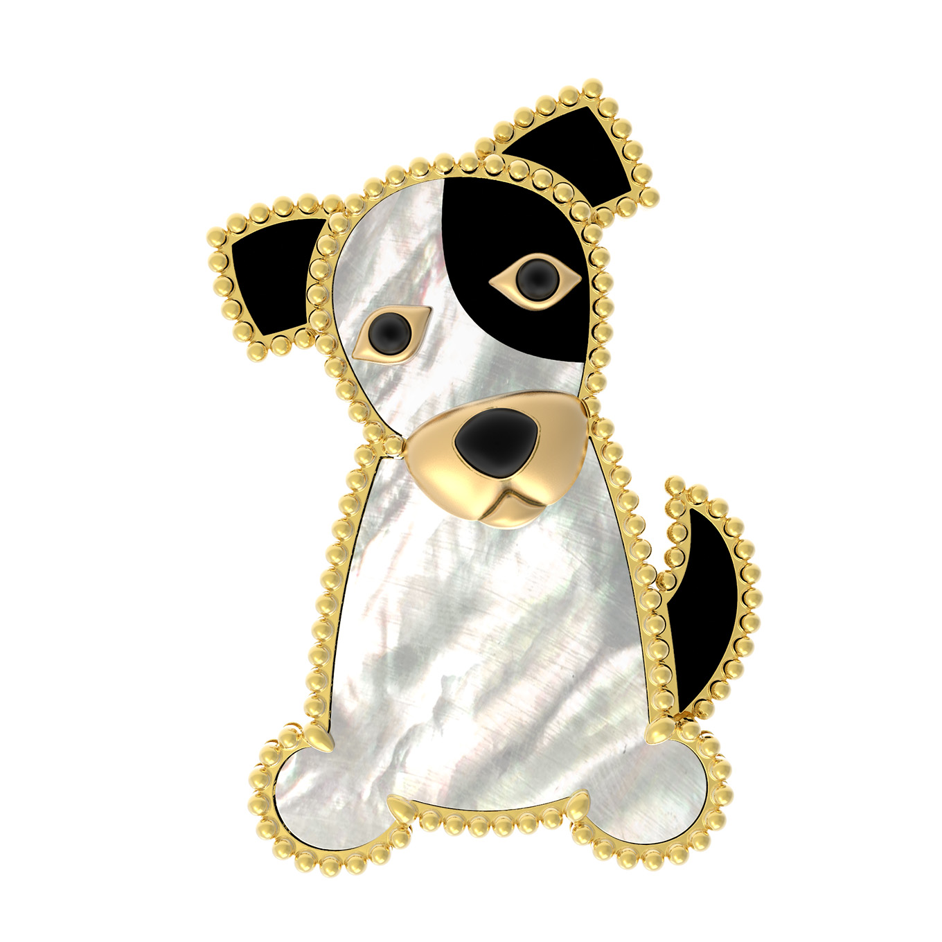 Брошь из лимонного золота c эмалью, ониксом и перламутром