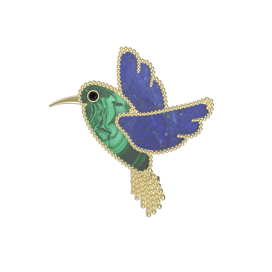 Брошь из лимонного золота c эмалью, лазуритом и малахитом