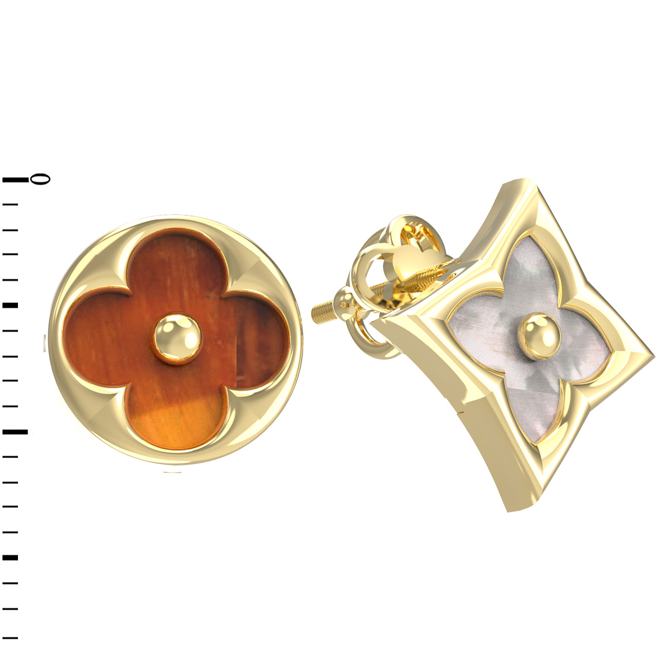 Серьги из лимонного золота c тигровым глазом и перламутром